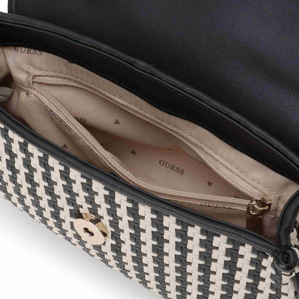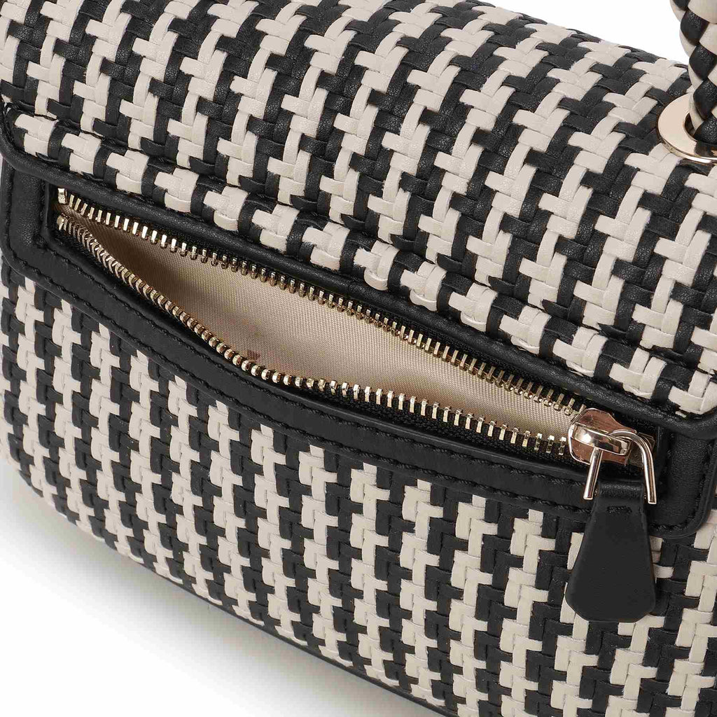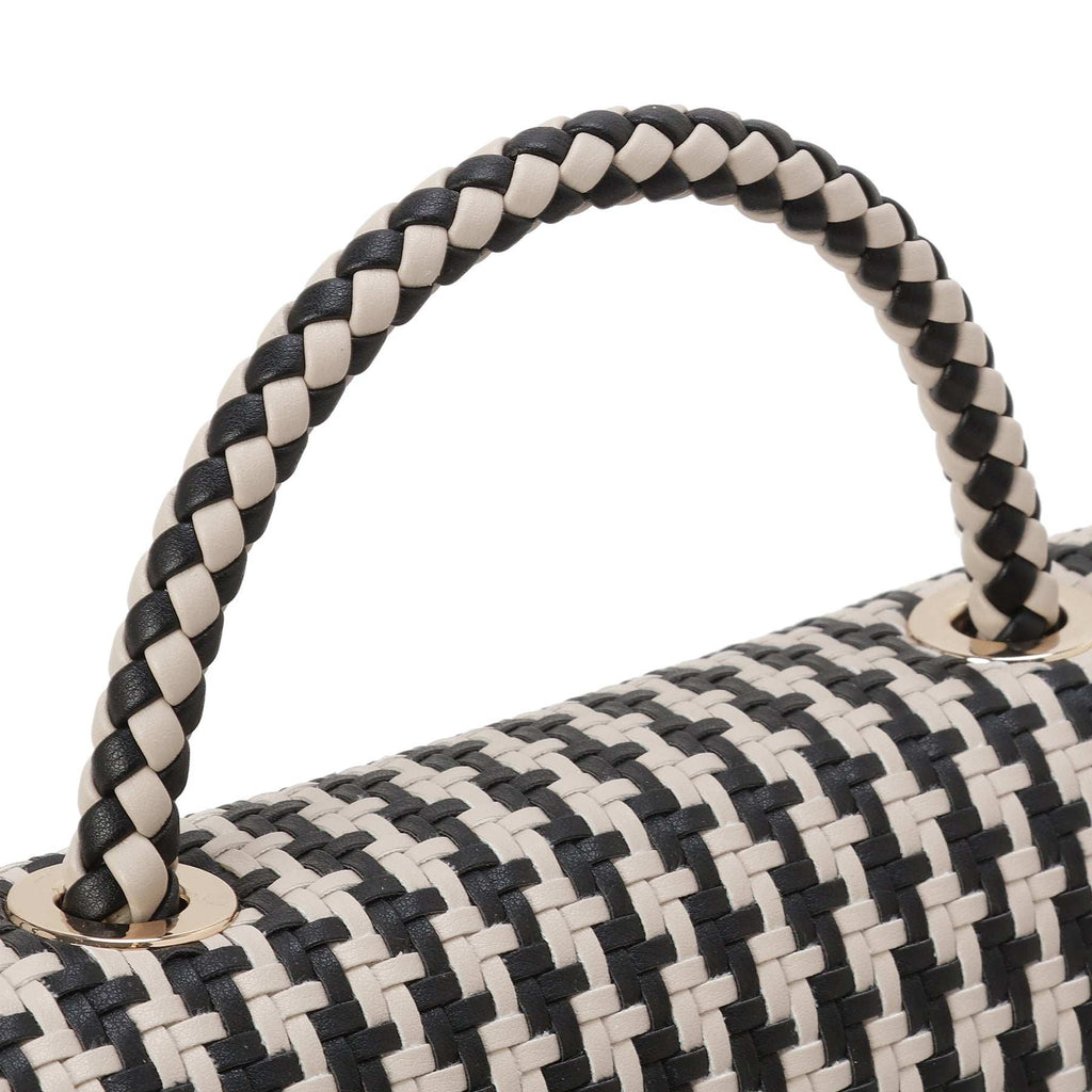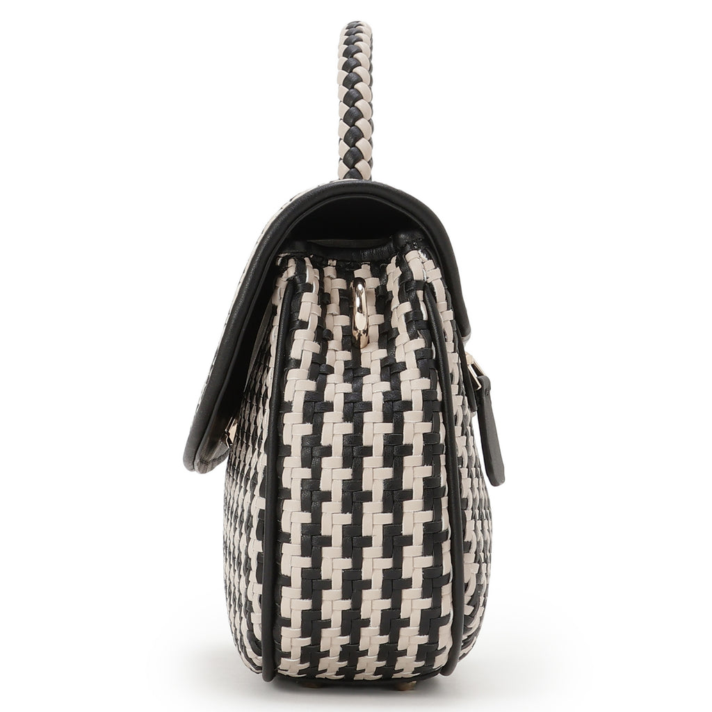 Made with braided faux leather on the outside, this handle bag is subtle yet distinctive.