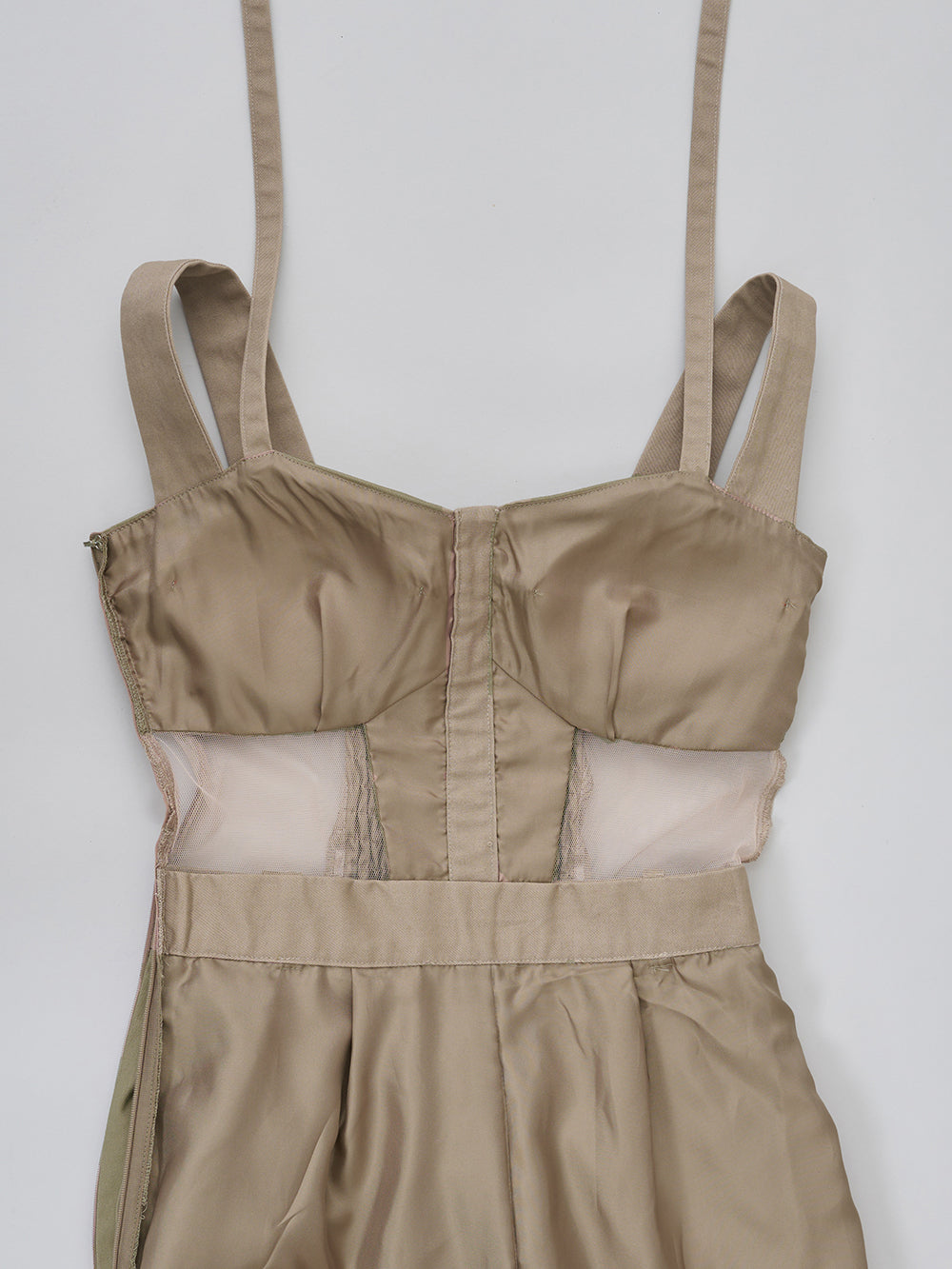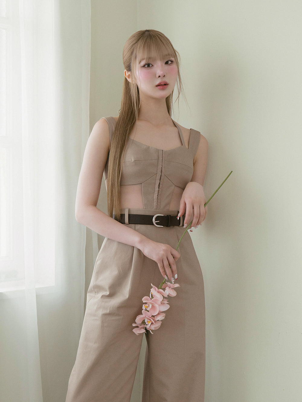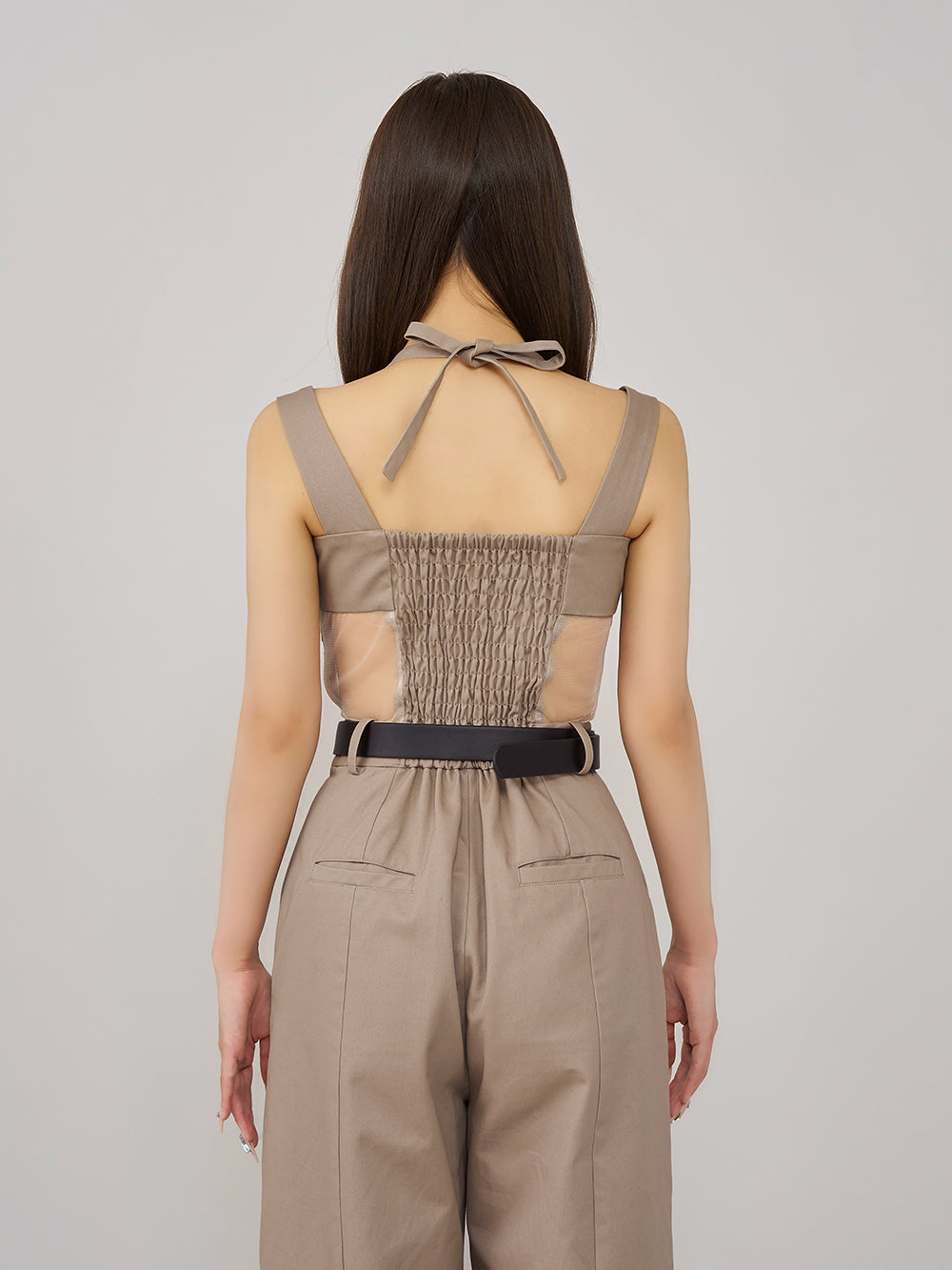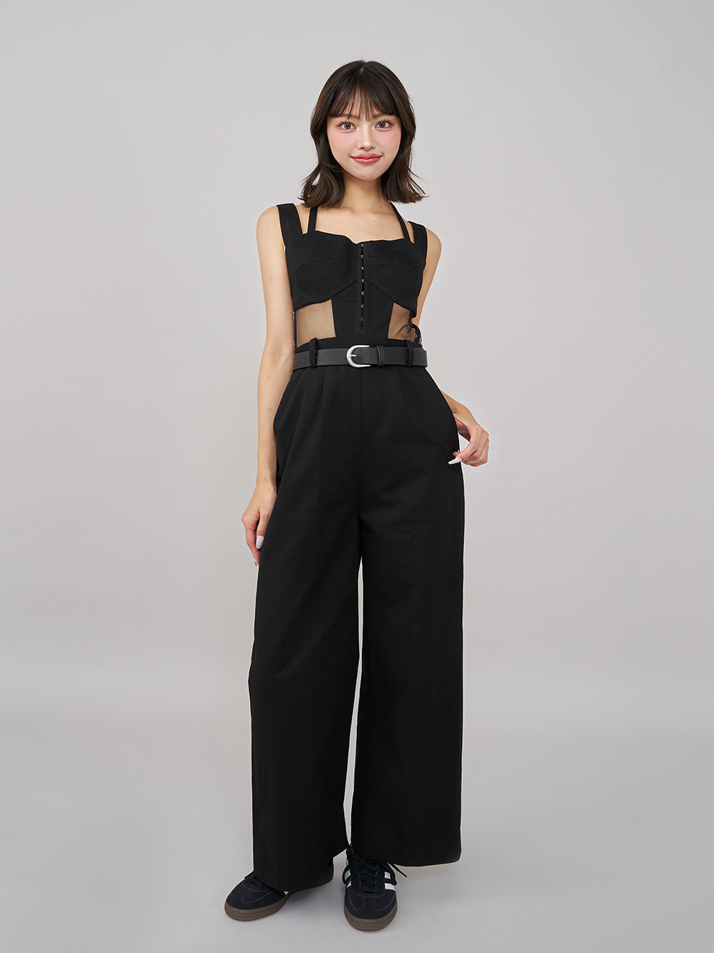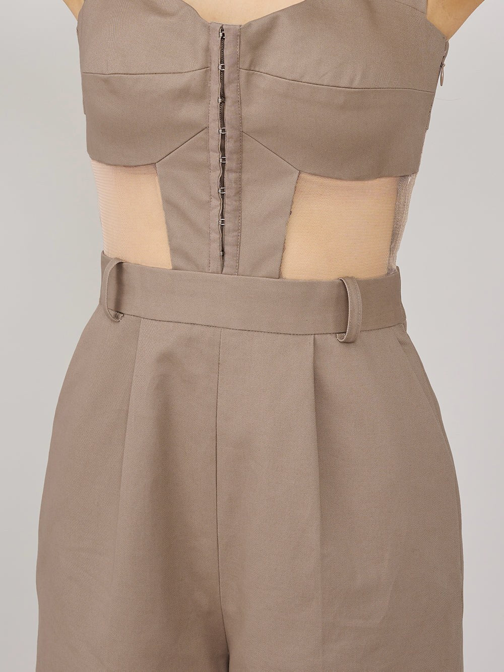 Furthermore, a daring sheer tulle is applied to the sides below the chest, creating a feminine, lingerie-like sense of transparency.