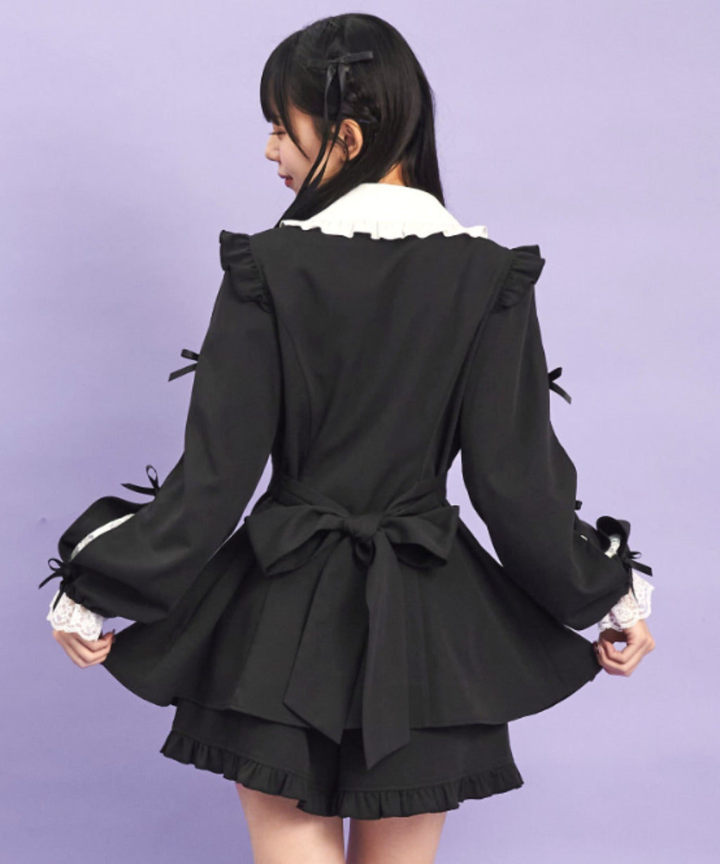 The lace peeking out from the three-tiered sleeve slit, and the ribbons placed here and there, are also cute when viewed from the side♪