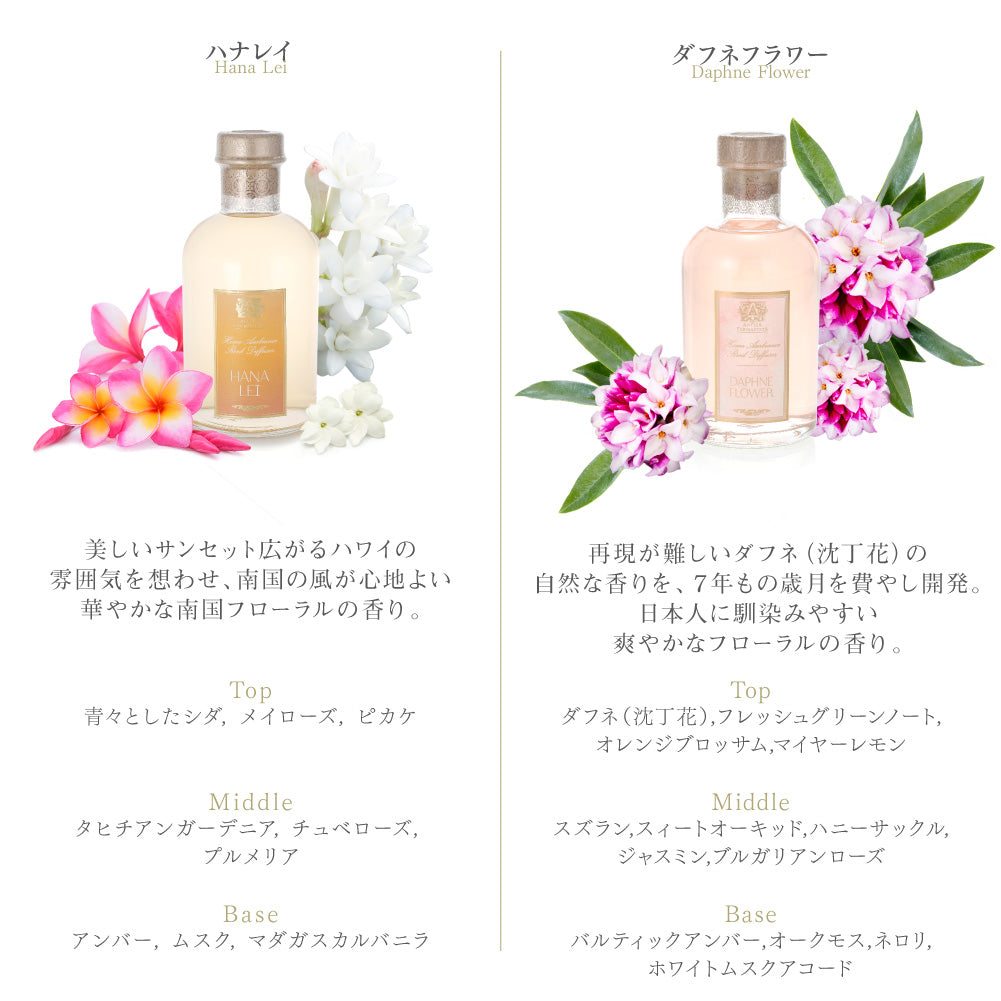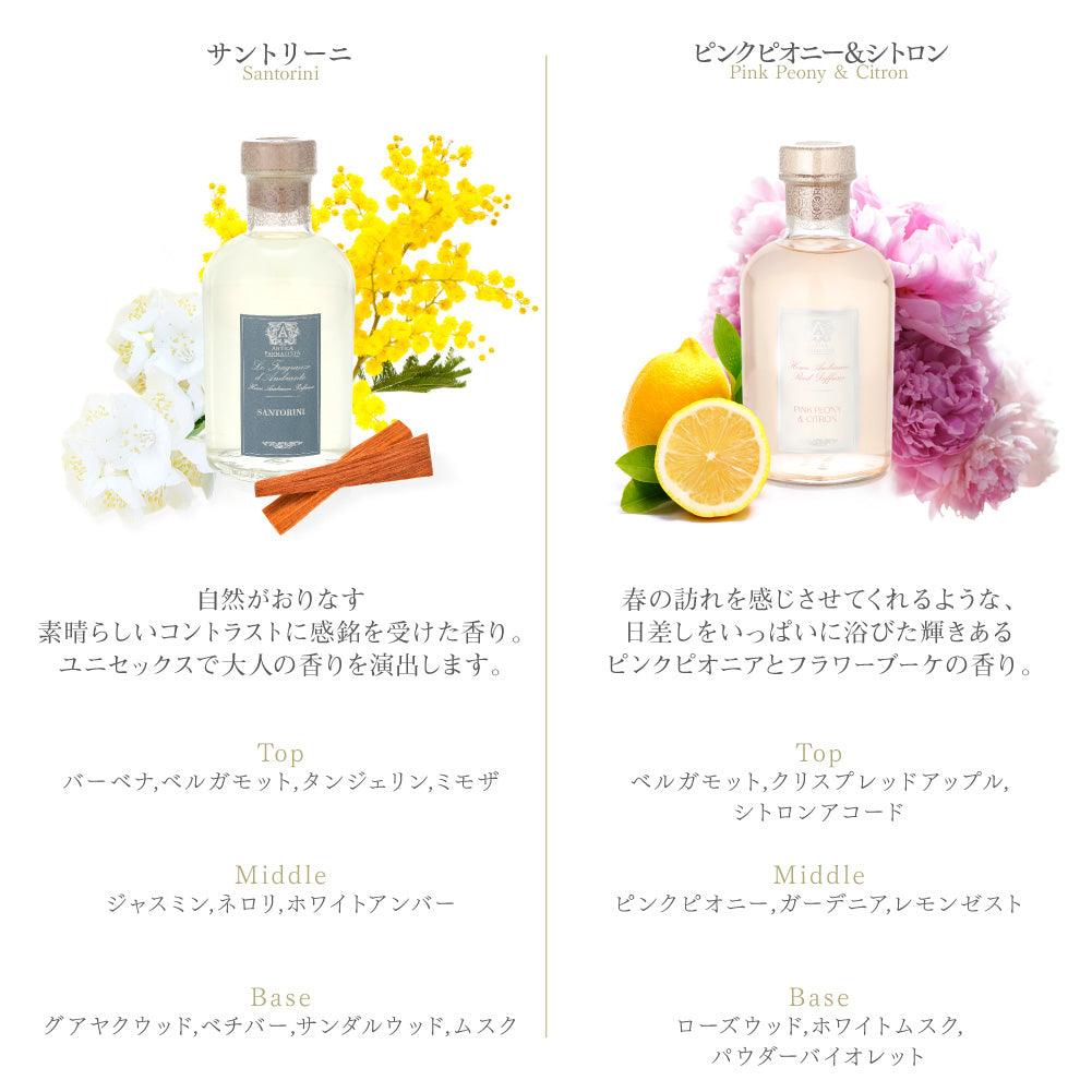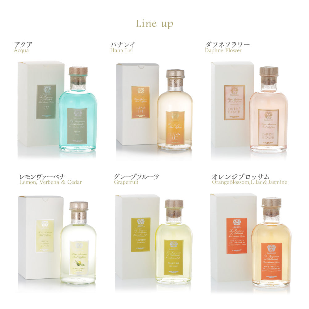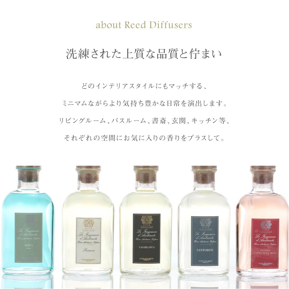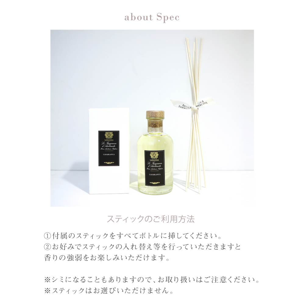 Antica Farmacista, born in the United States in 2003, features a simple bottle design that can be used anywhere, such as in the living room, entrance, or kitchen. If you feel the scent has weakened, turn the sticks upside down. You can also adjust the fragrance by reducing the number of sticks.