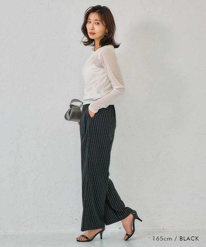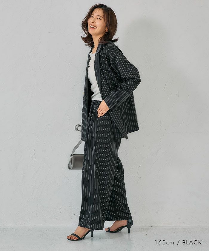 The thin vertical lines of the stripes enhance the style-up effect, making it perfect for days when you want to look taller.
