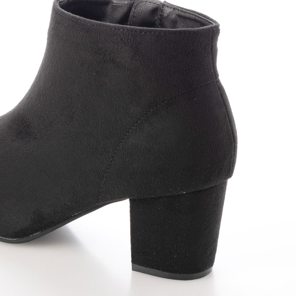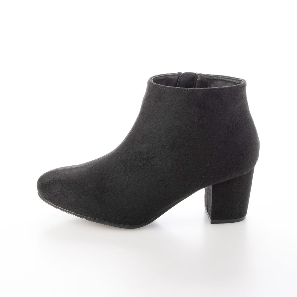 These are almond-toe booties with a sleek silhouette.