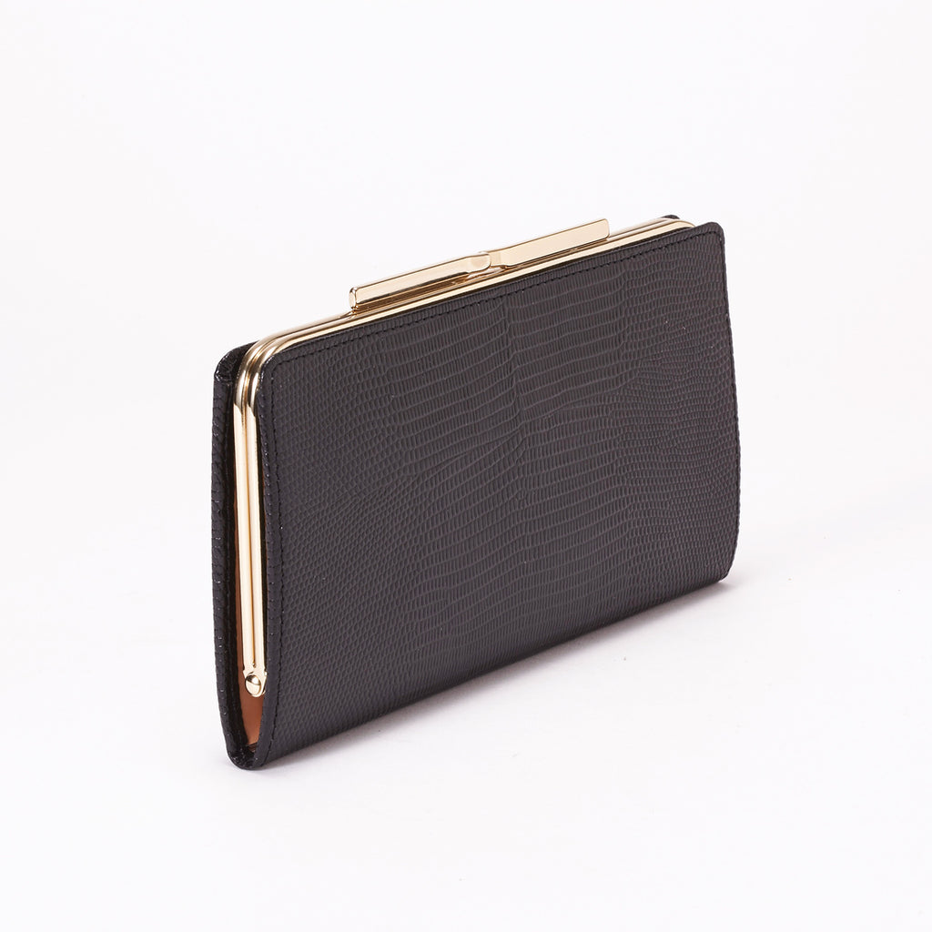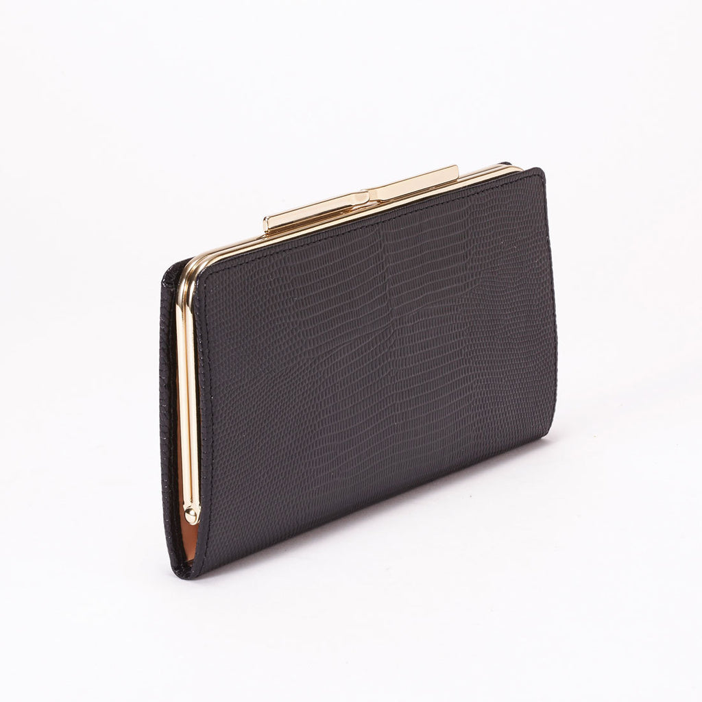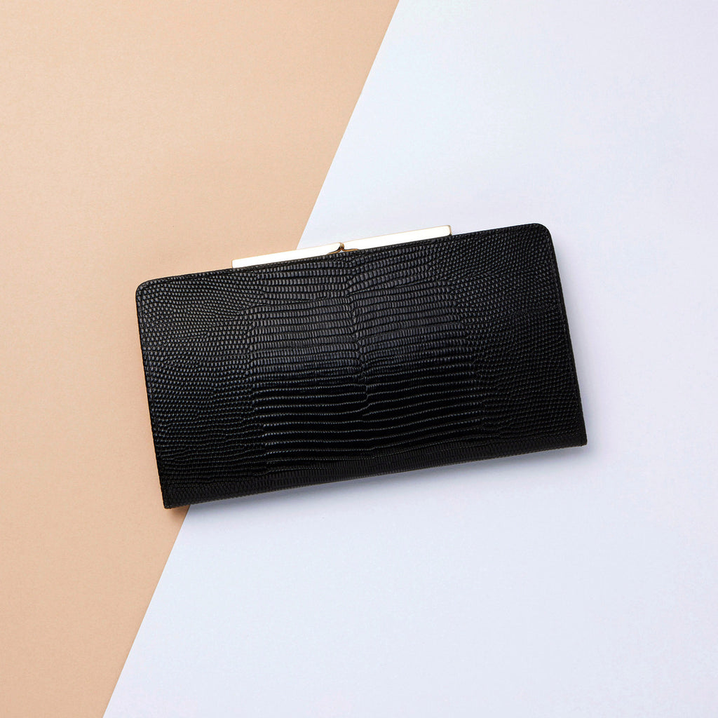 ◇TOPKAPI LUCIA Italian leather lizard embossed long wallet with clasp closure.