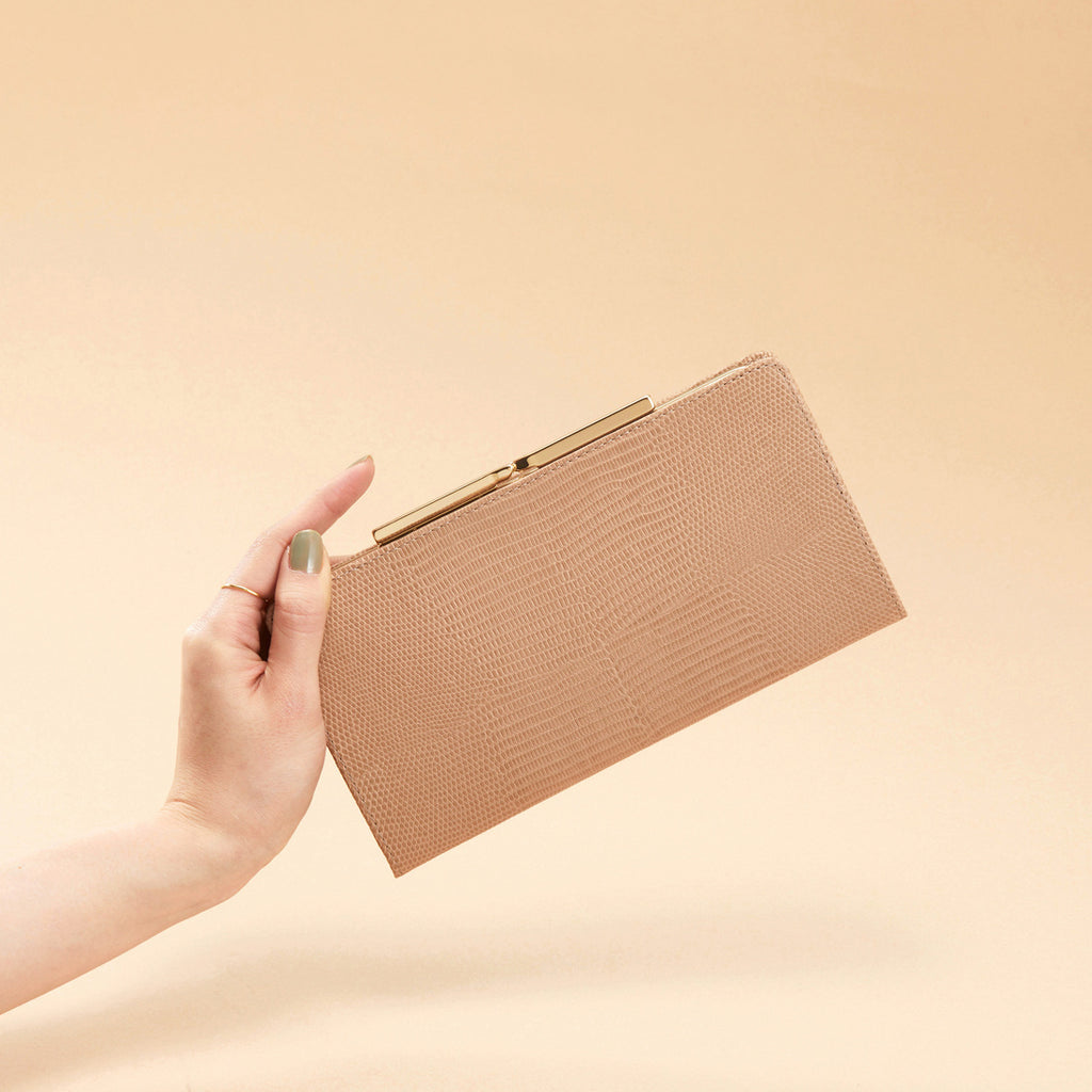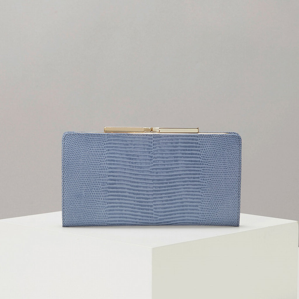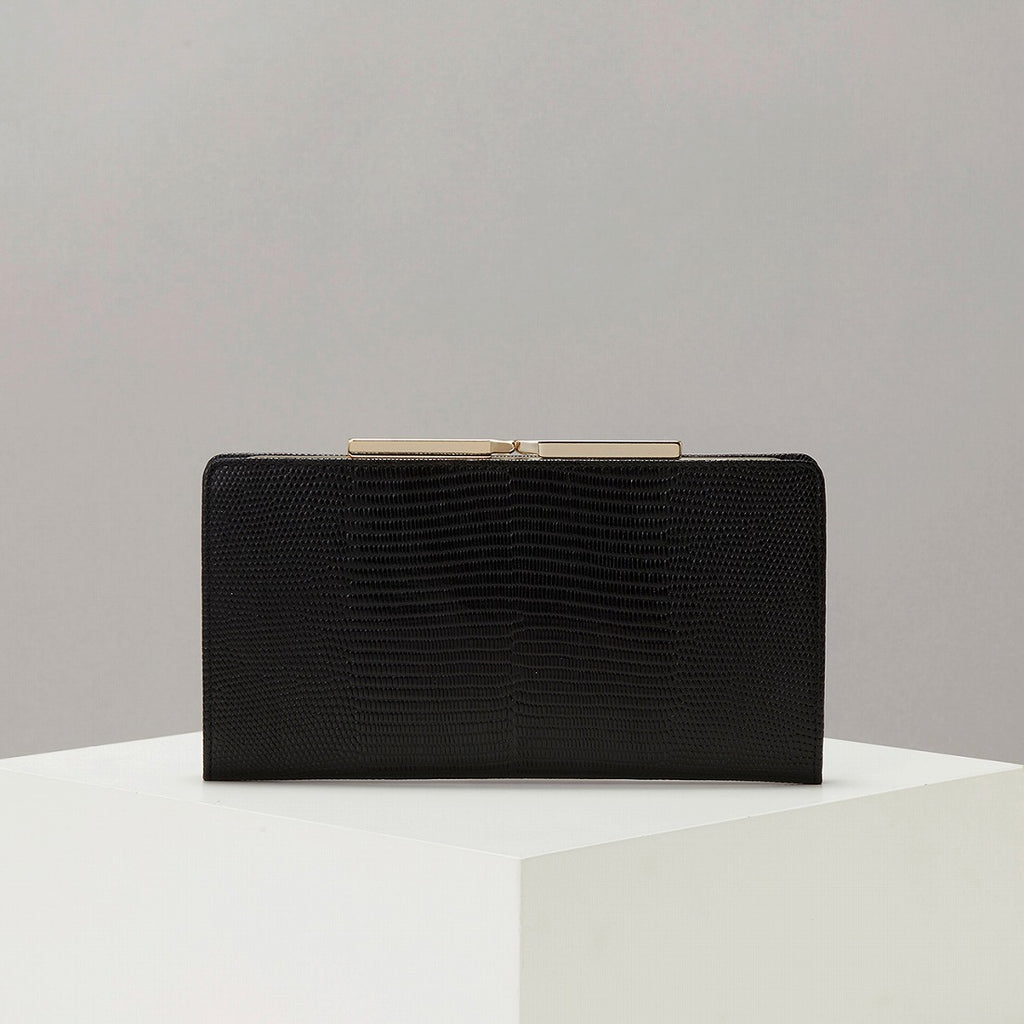 ◇TOPKAPI LUCIA Italian leather lizard embossed long wallet with clasp closure.