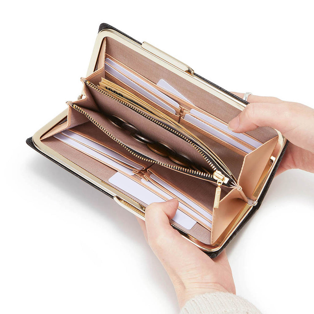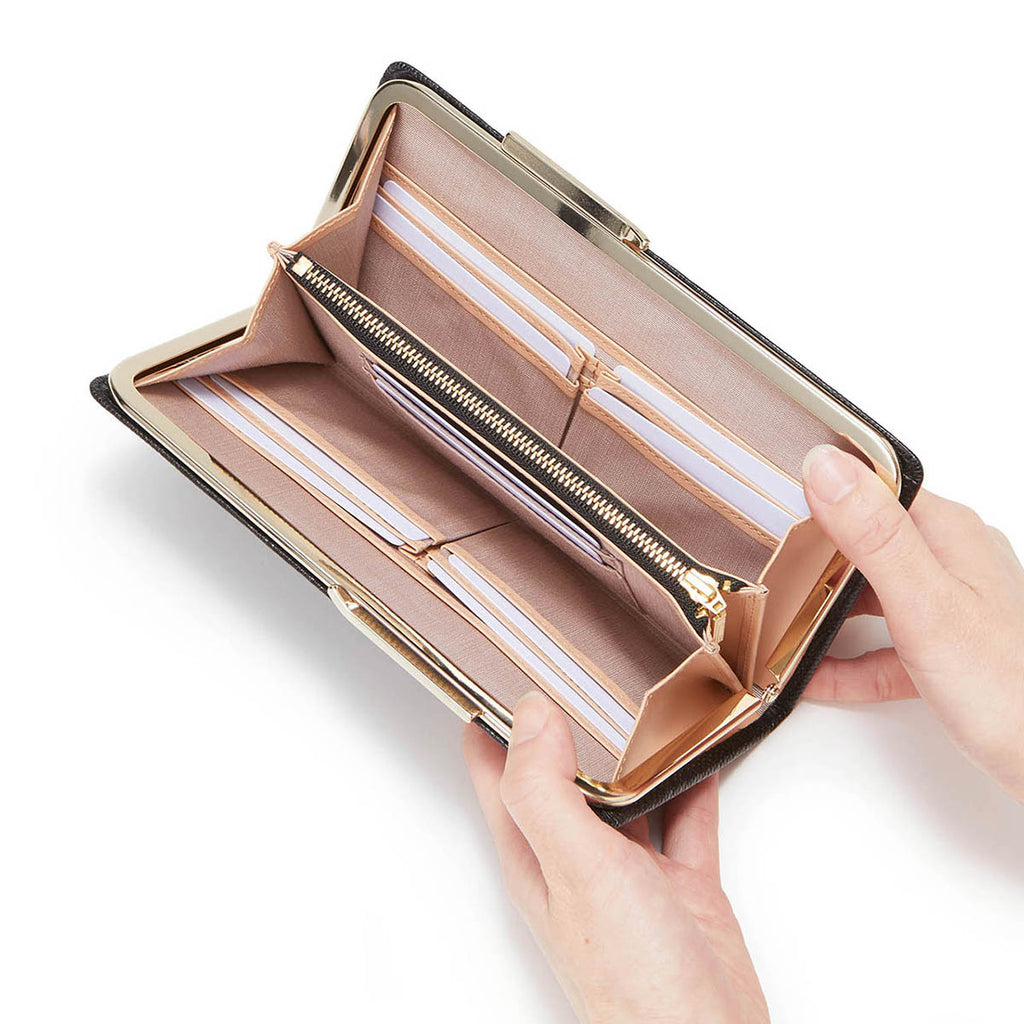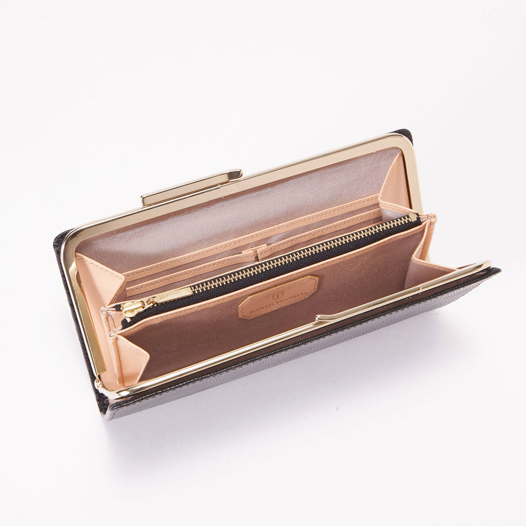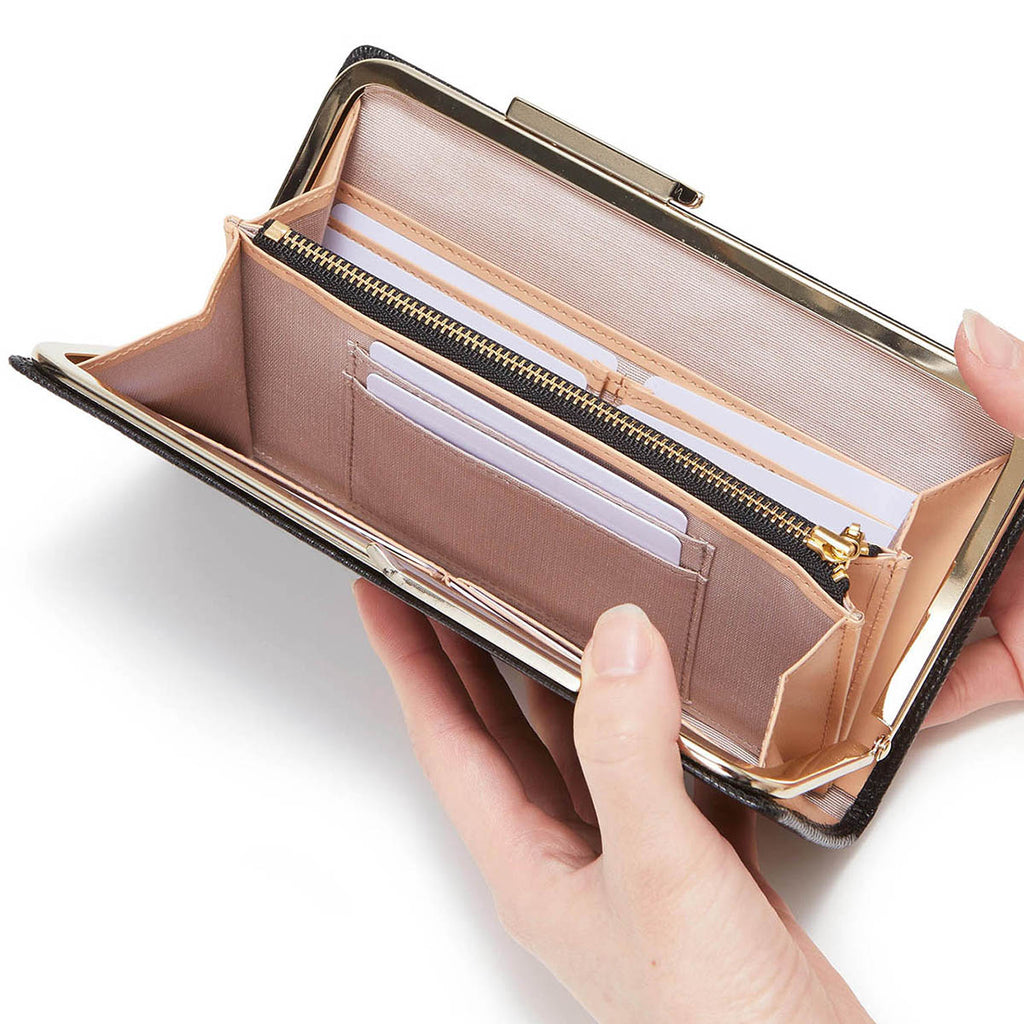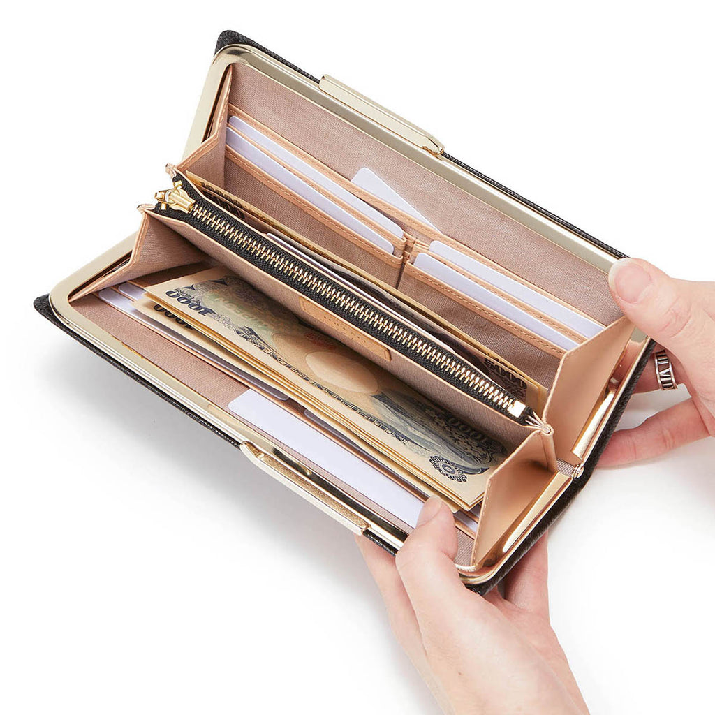 It opens wide, the coin purse has a zipper, and the card pockets have gussets, so you can store plenty of things in it.