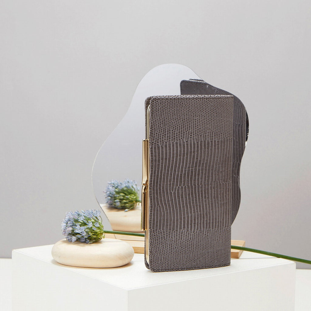 The high-quality Italian leather with lizard embossing gives it a classic and intellectual feel.