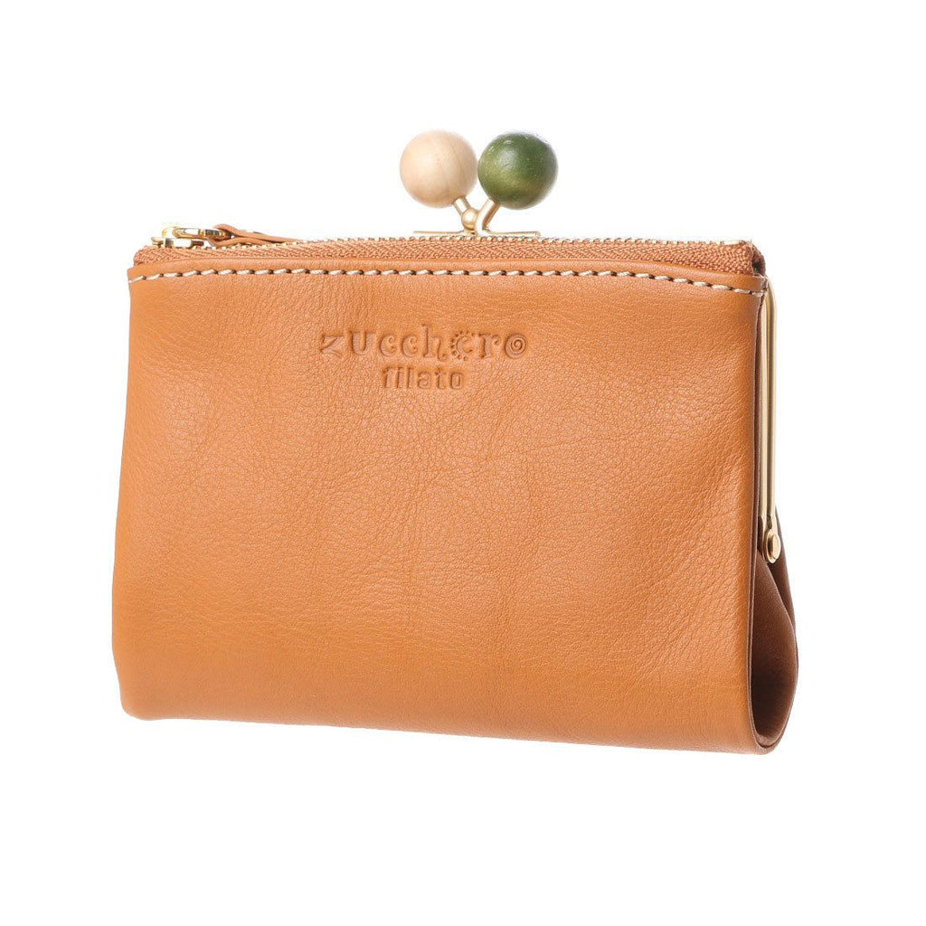 This cow leather purse bi-fold wallet from zucchero filato features a cute purse design made from wood.