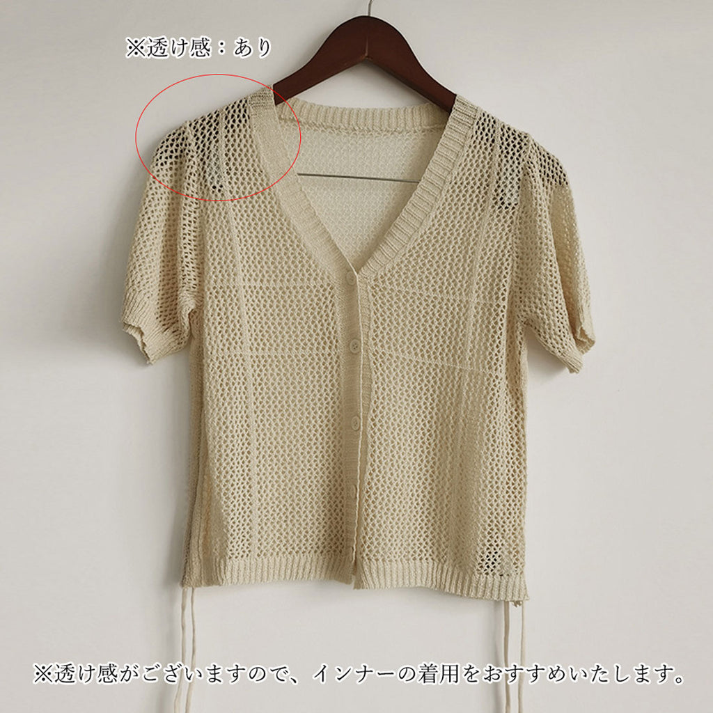Skin-revealing cardigan sheer knit top front-opening see-through knit