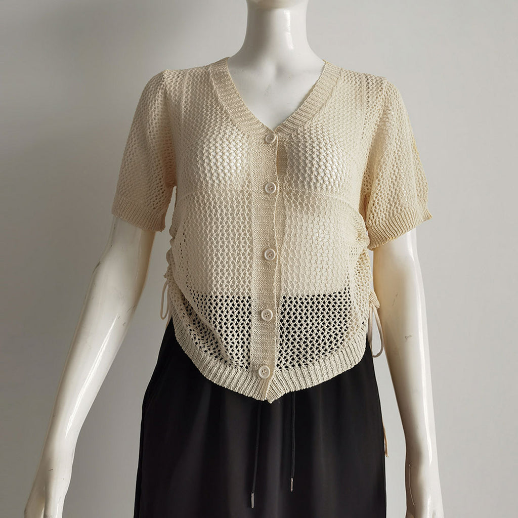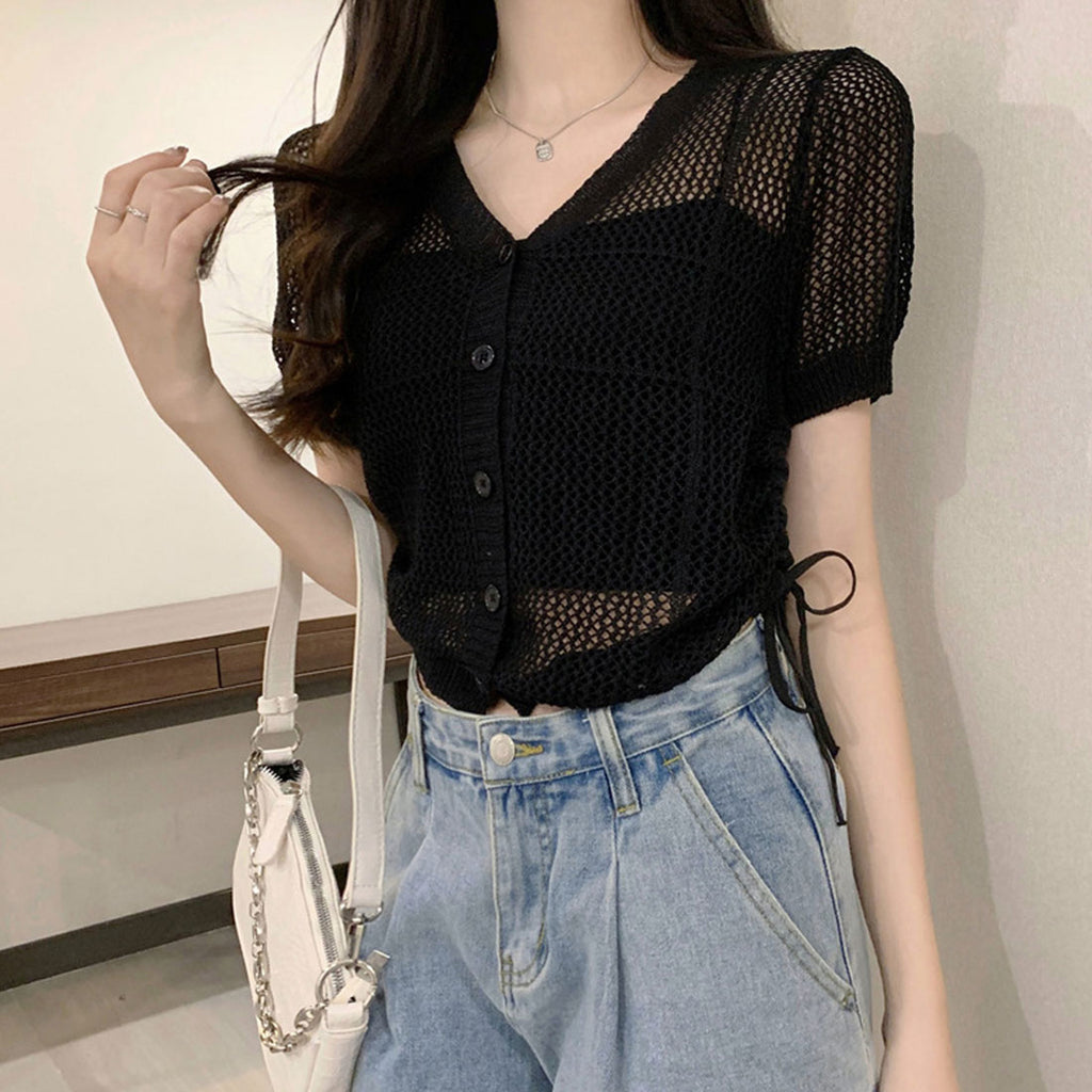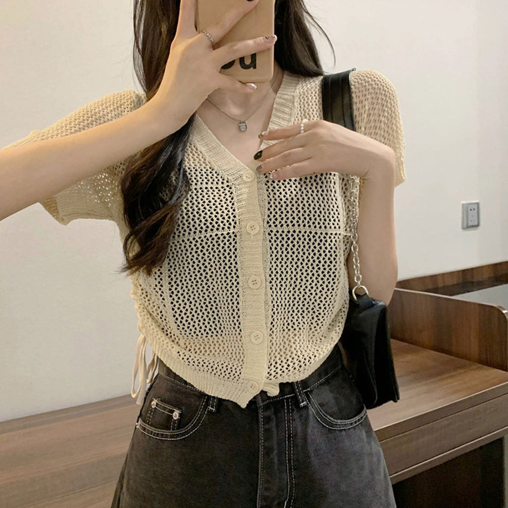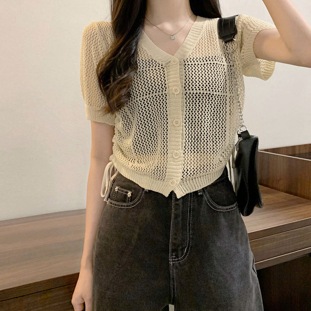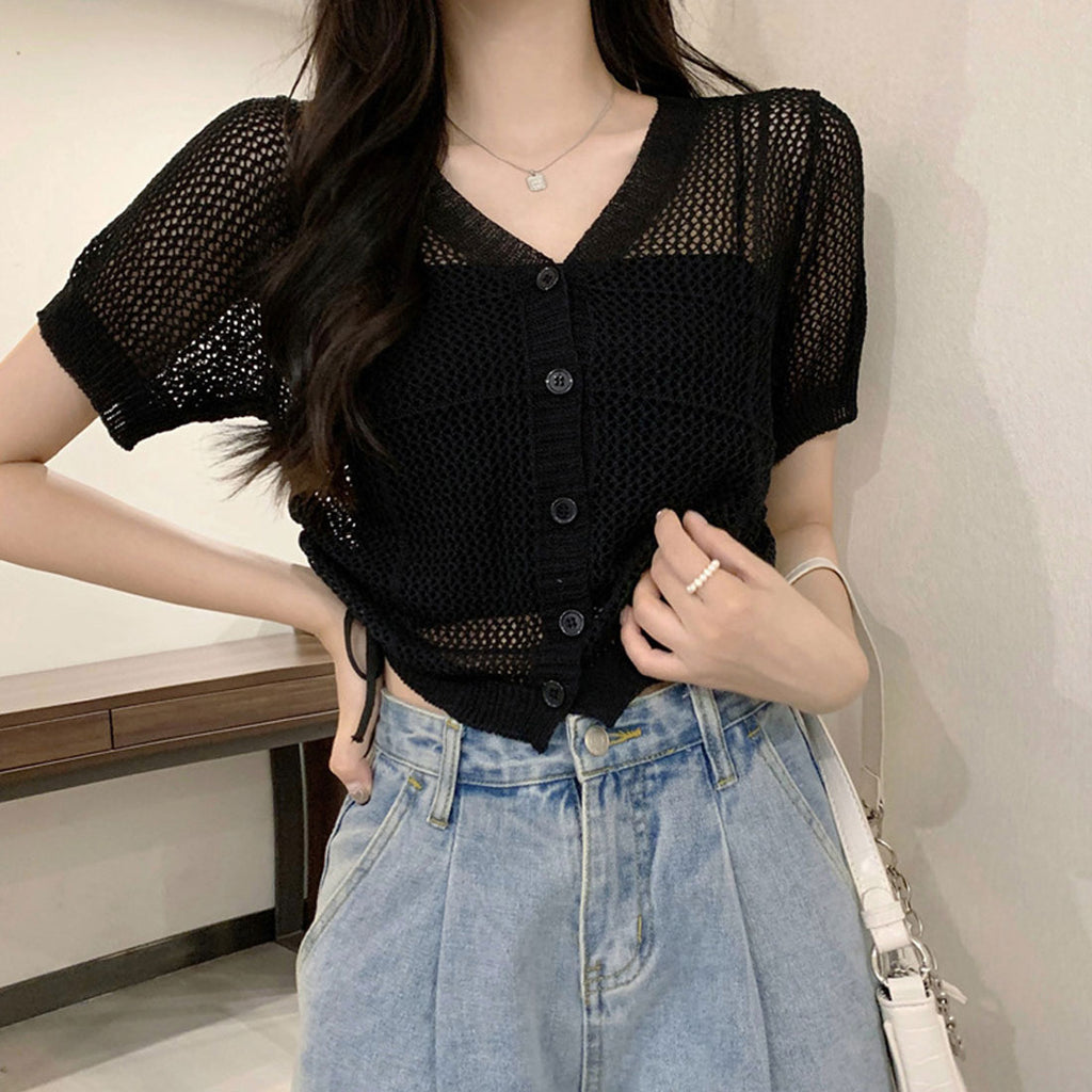 Ladies Cute Summer Cardigan Korean Style Slimming Sheer Top Plain Lightweight V-Neck Summer Knit Top Summer