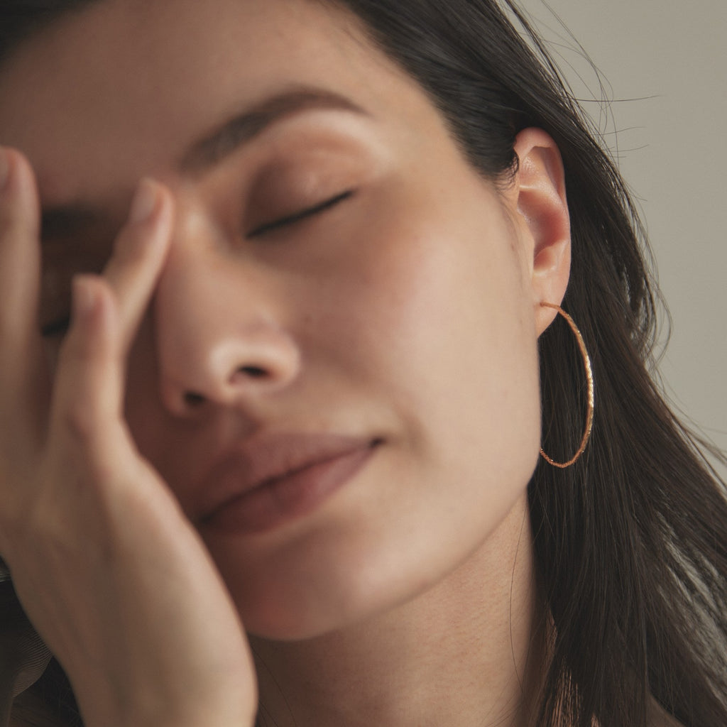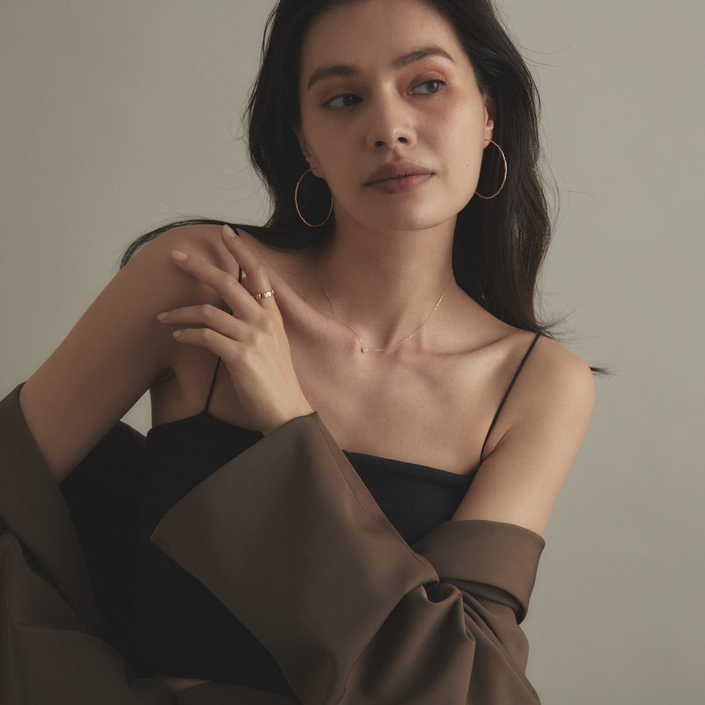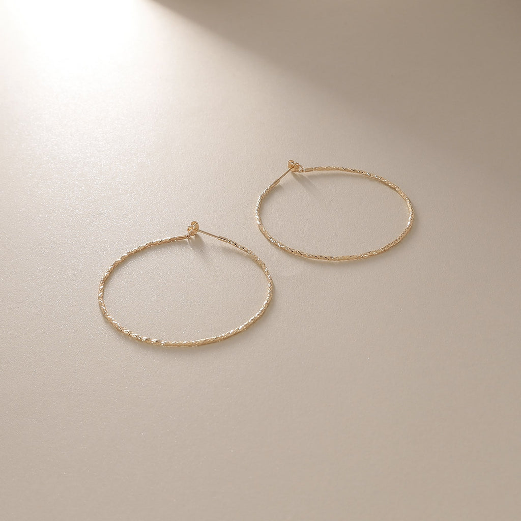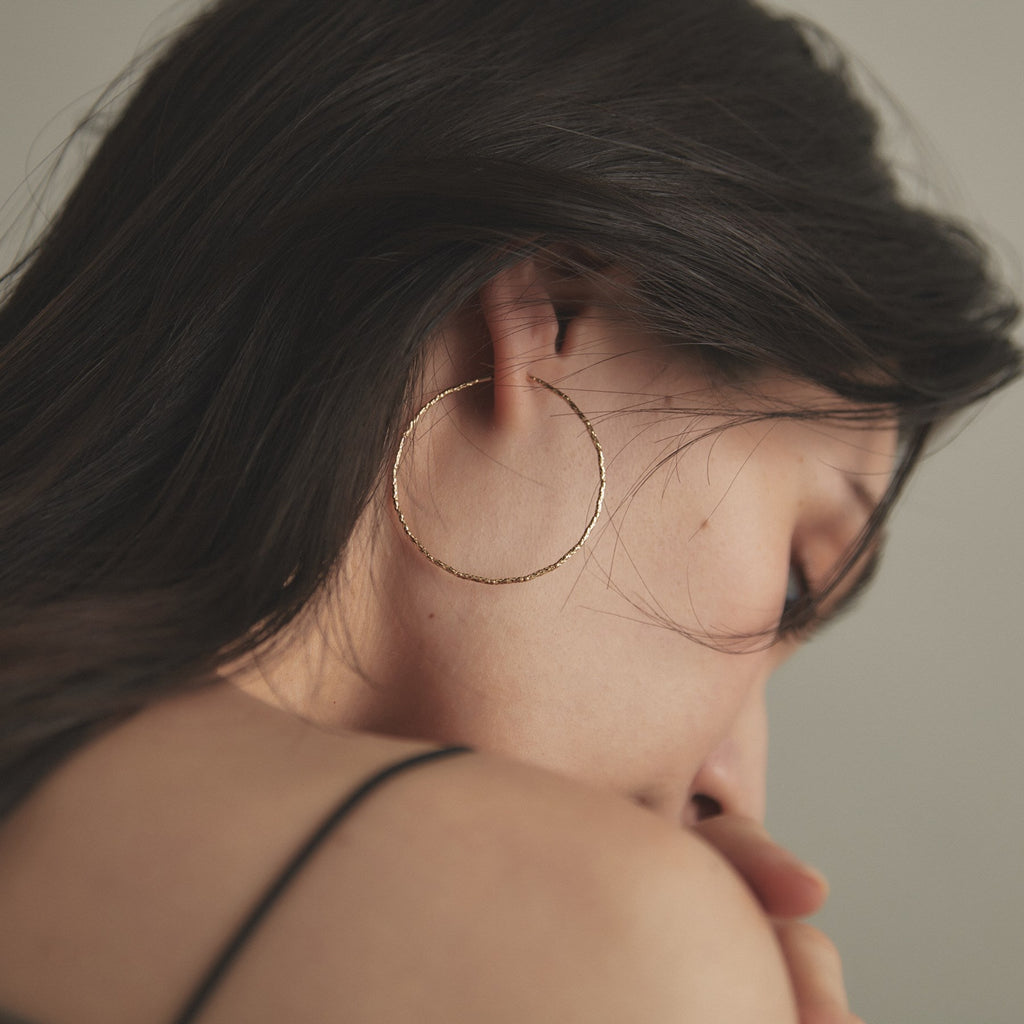 Large hoop earrings that, when paired with a simple style, create a trendy coordination for this year.