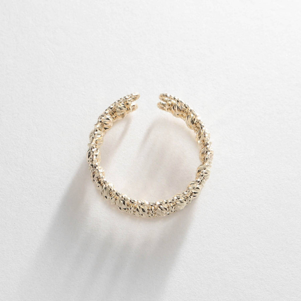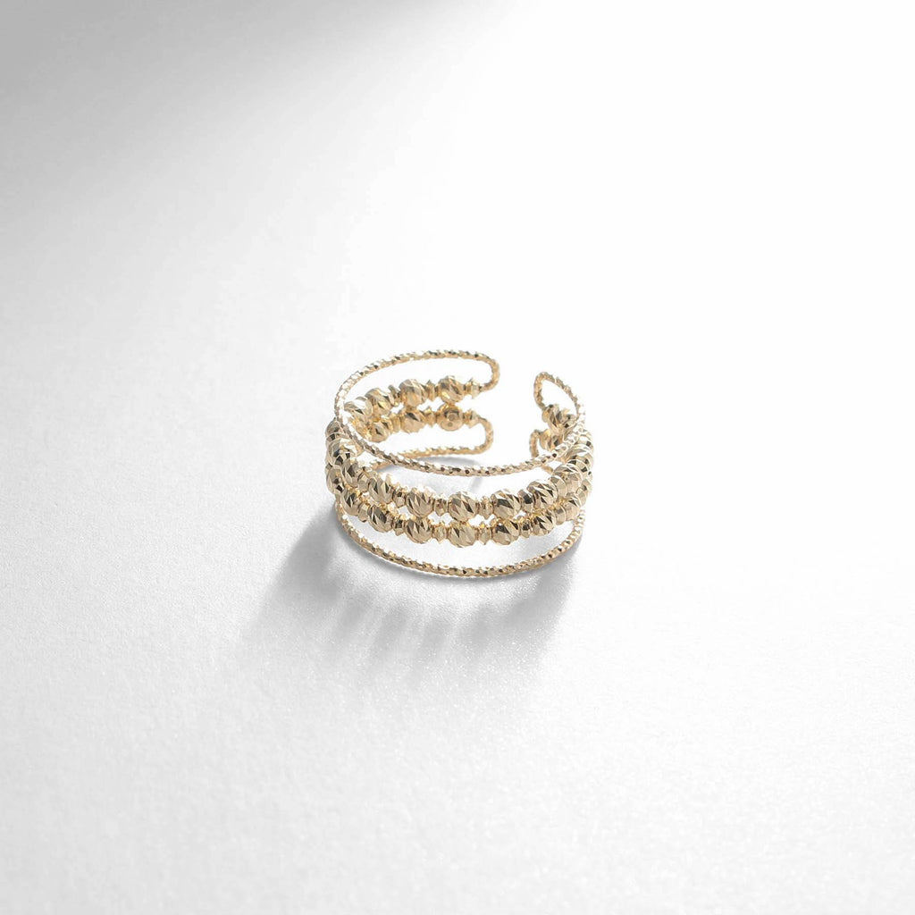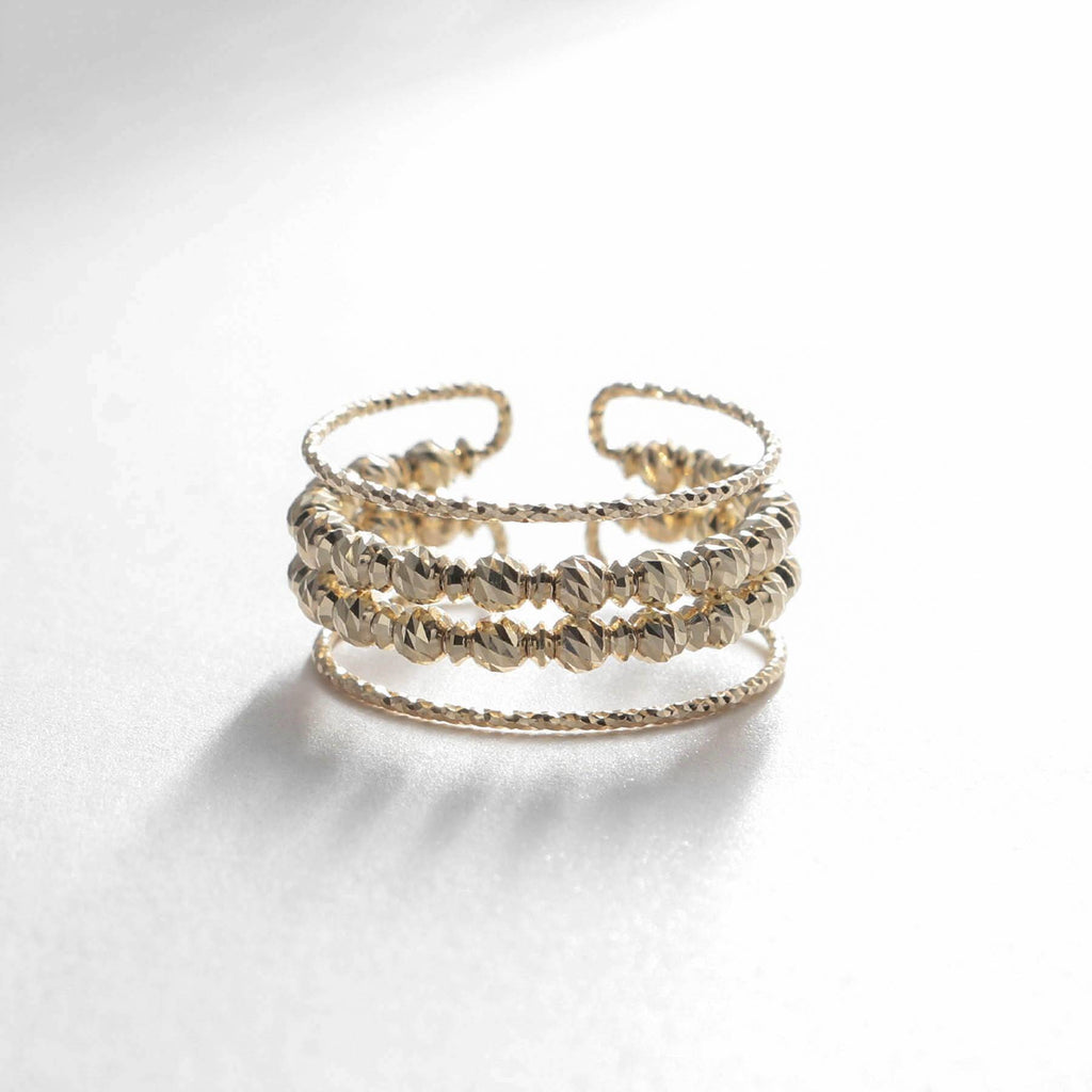 The ring adorned with cut beads features a striking design that catches the eye even when paired with a simple outfit.
