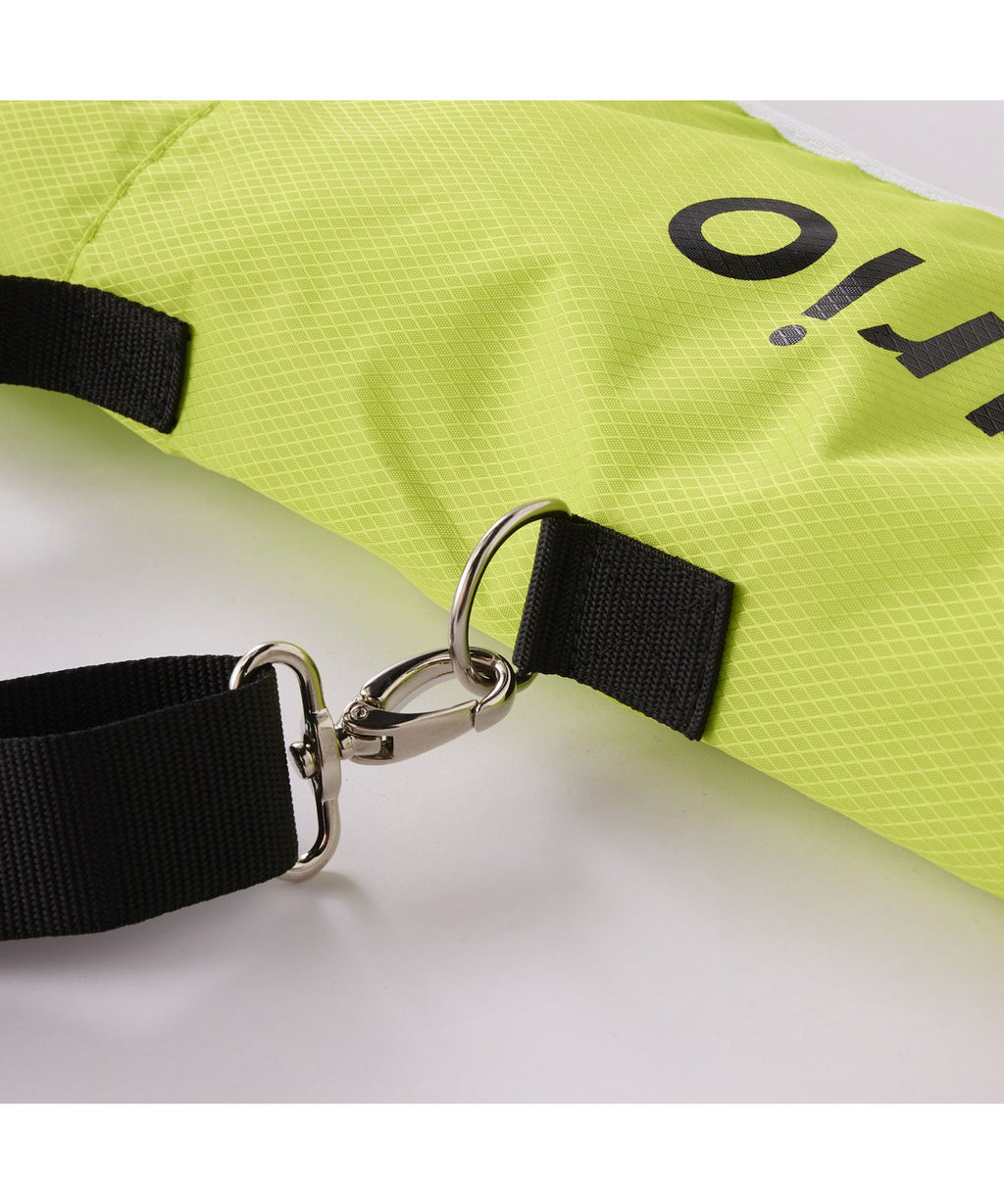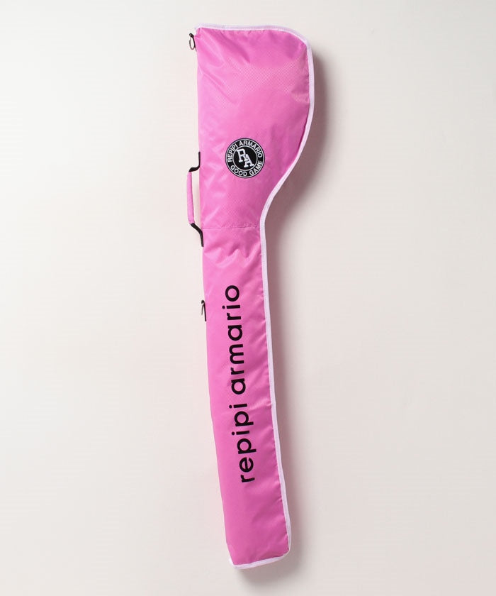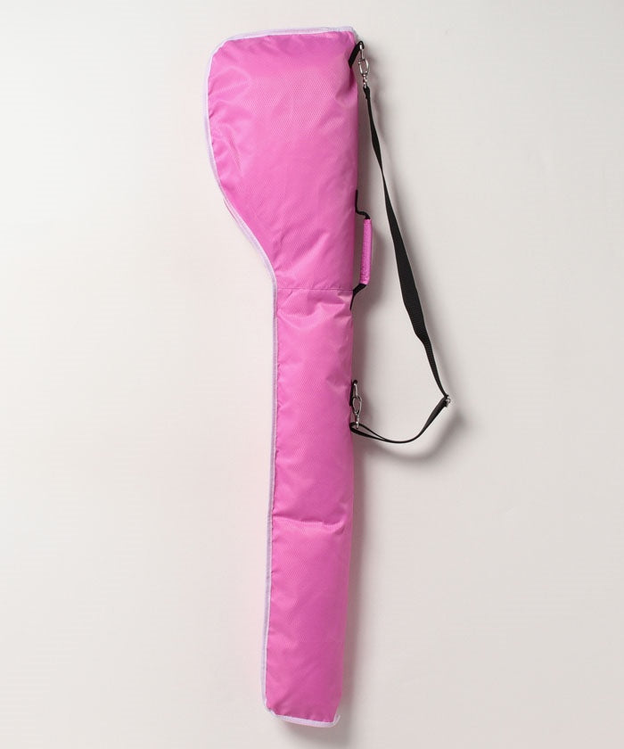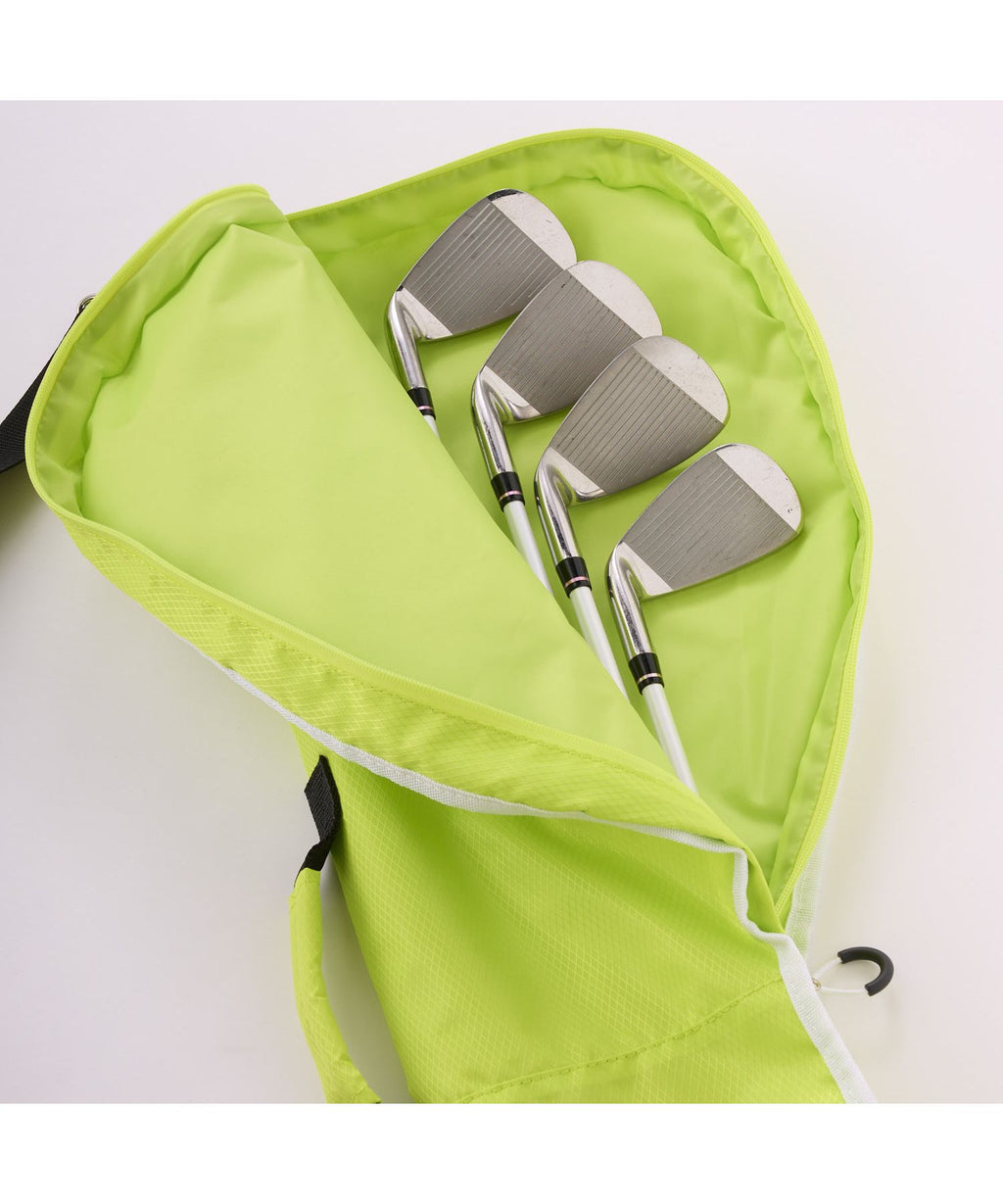 A practice bag with an outer pocket that can store small items like gloves and a mobile phone. It can hold 4 to 5 golf clubs. It comes with an adjustable shoulder strap for easy carrying.