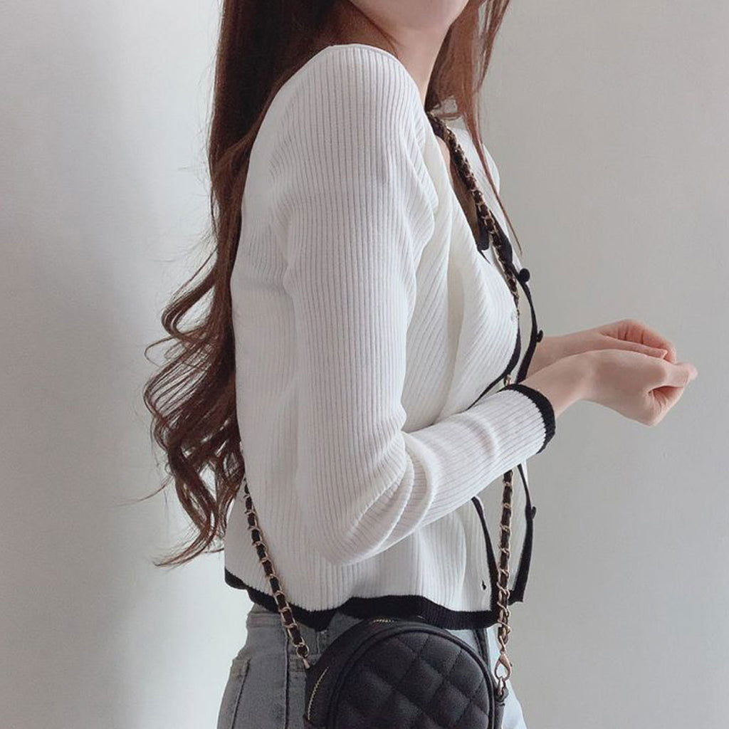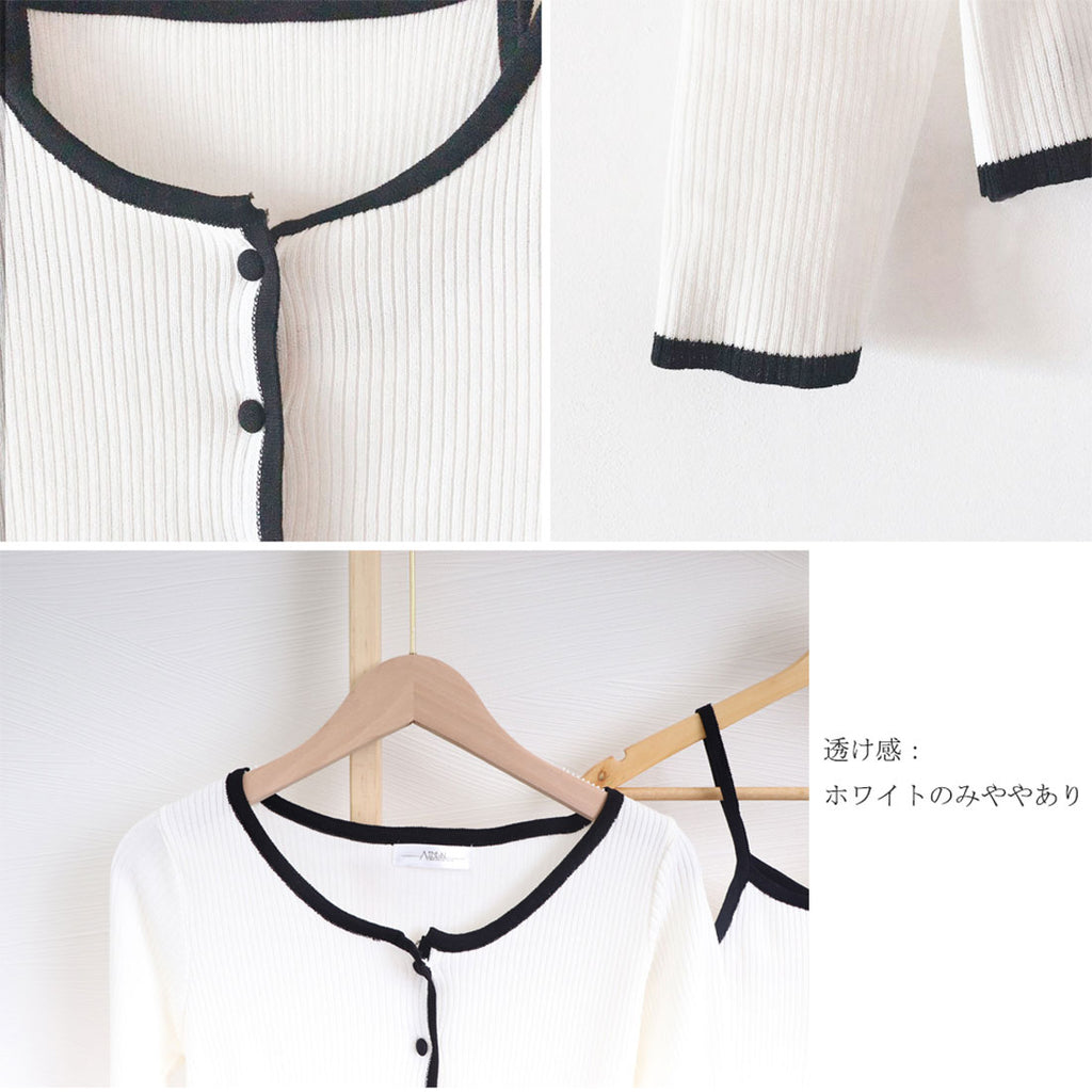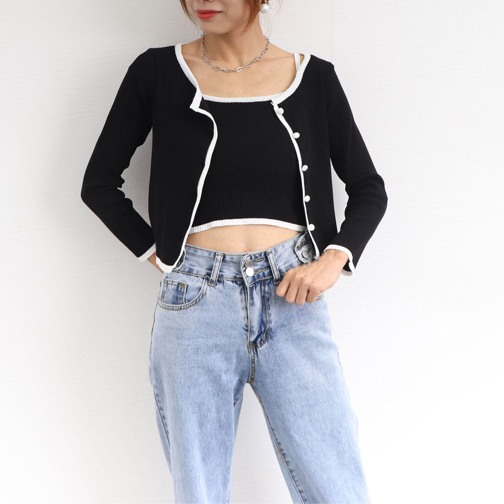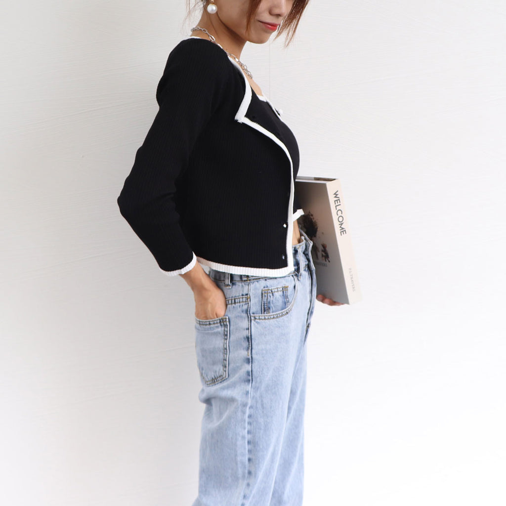 Short length knit top set-up, ladies' bicolor front opening, autumn clothes, ensemble, 20s 30s 40s, Korea