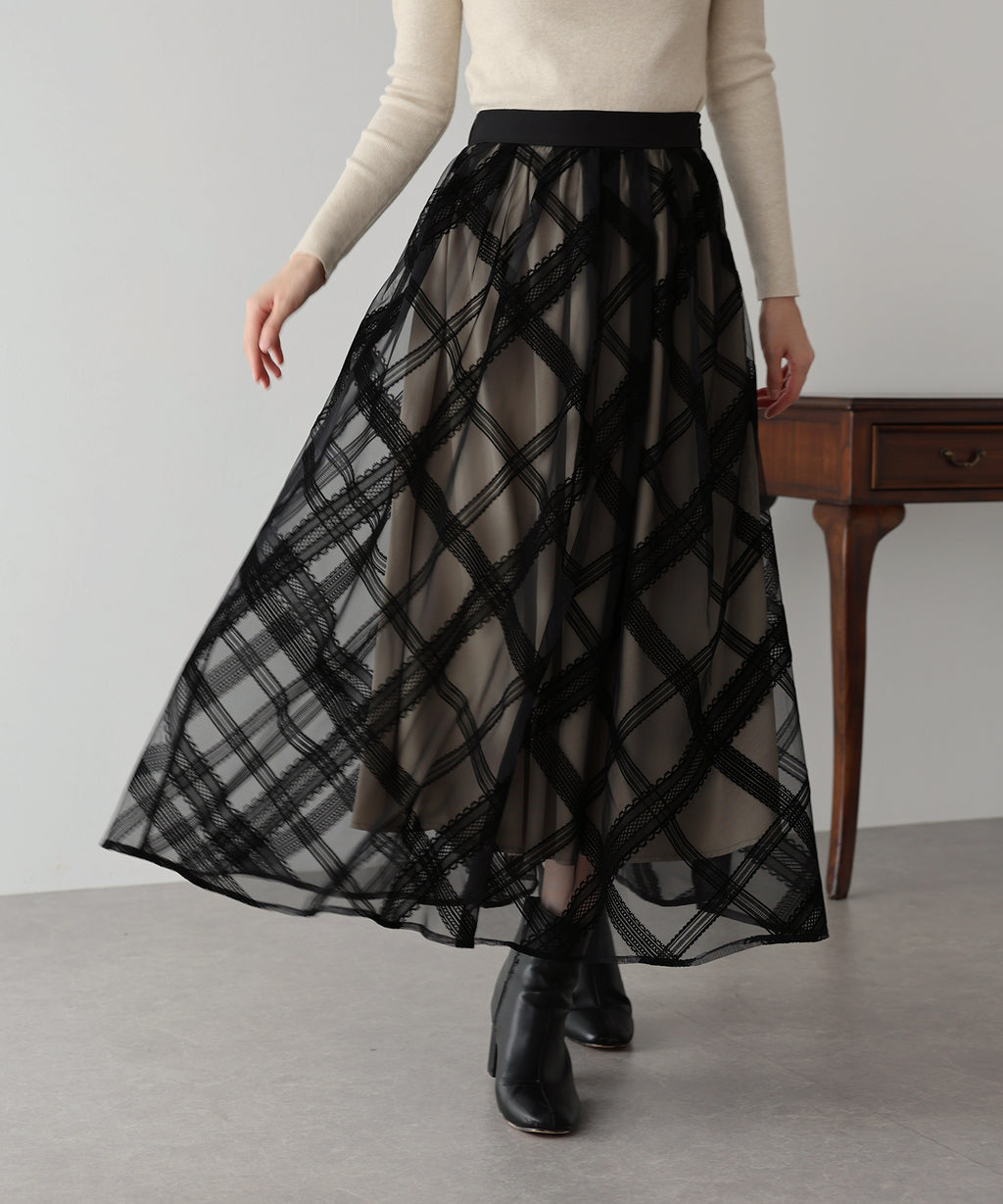 Tulle skirt with a classical atmosphere