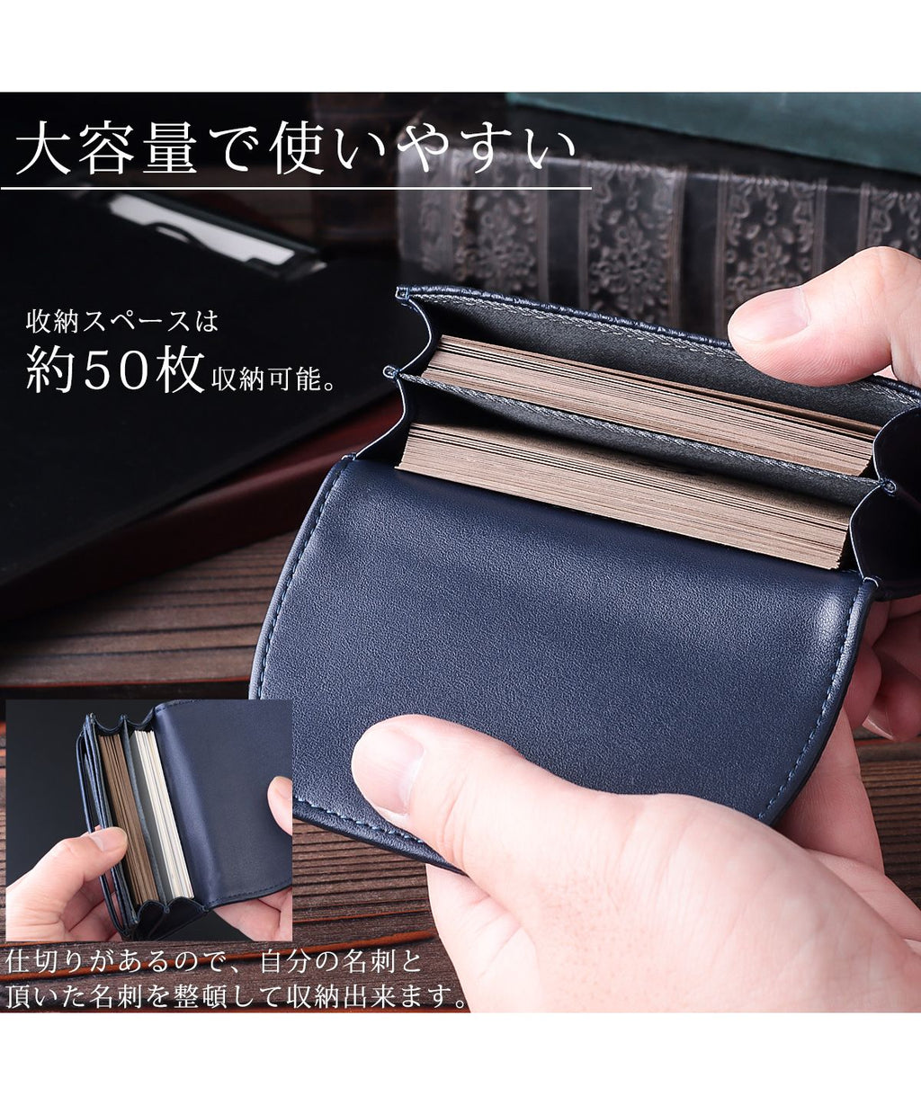 A simple and easy-to-use business card holder made luxuriously with genuine leather.