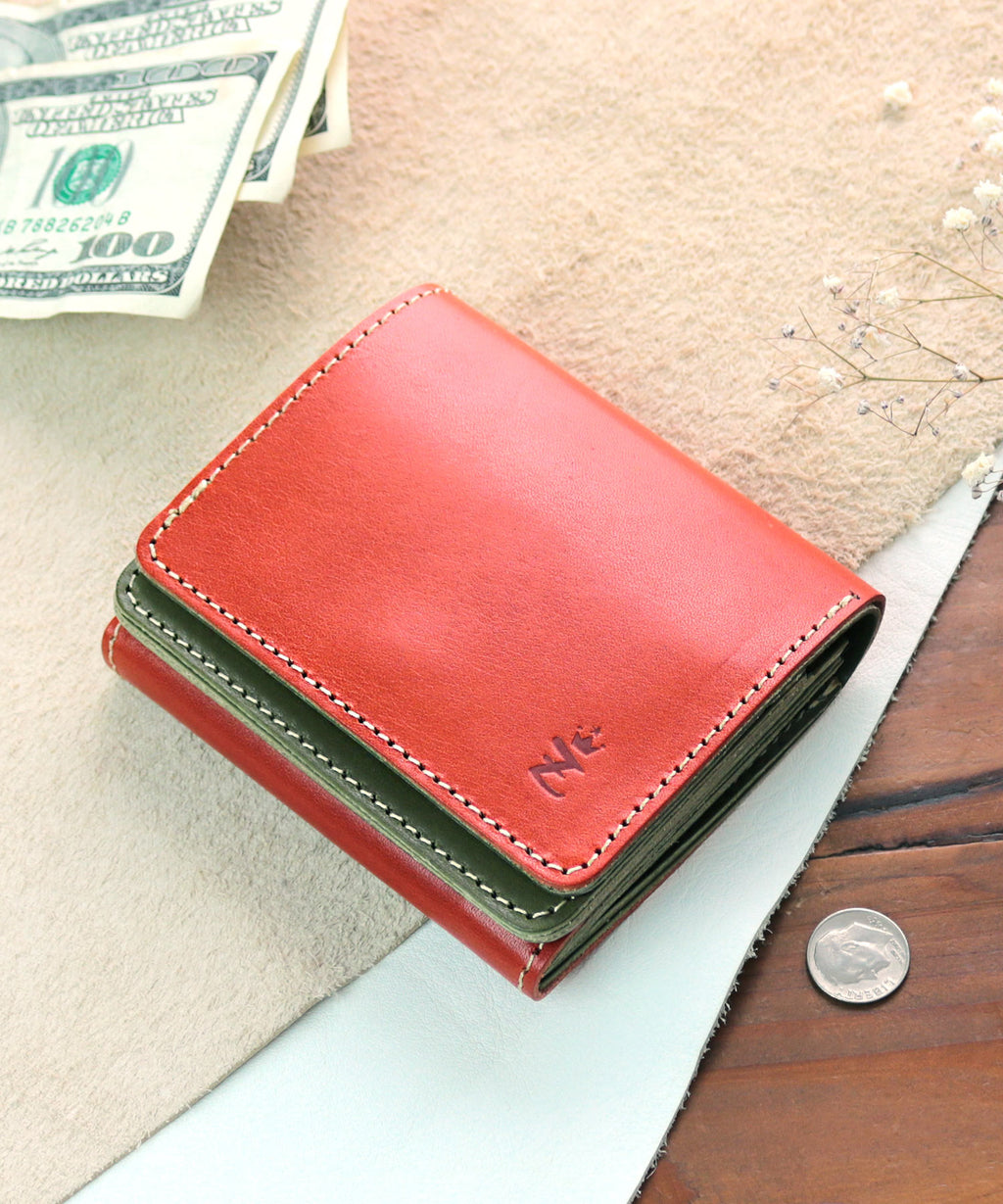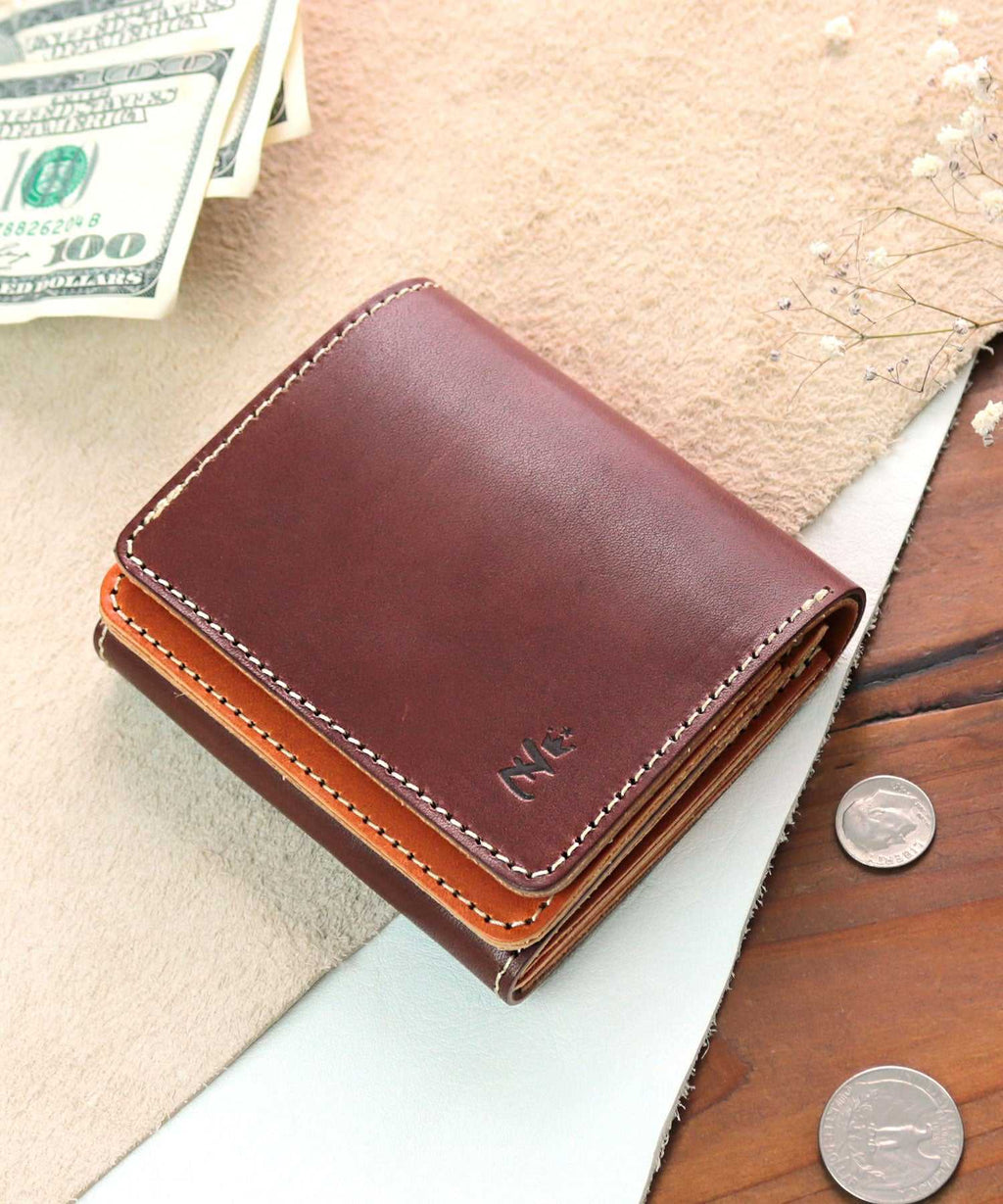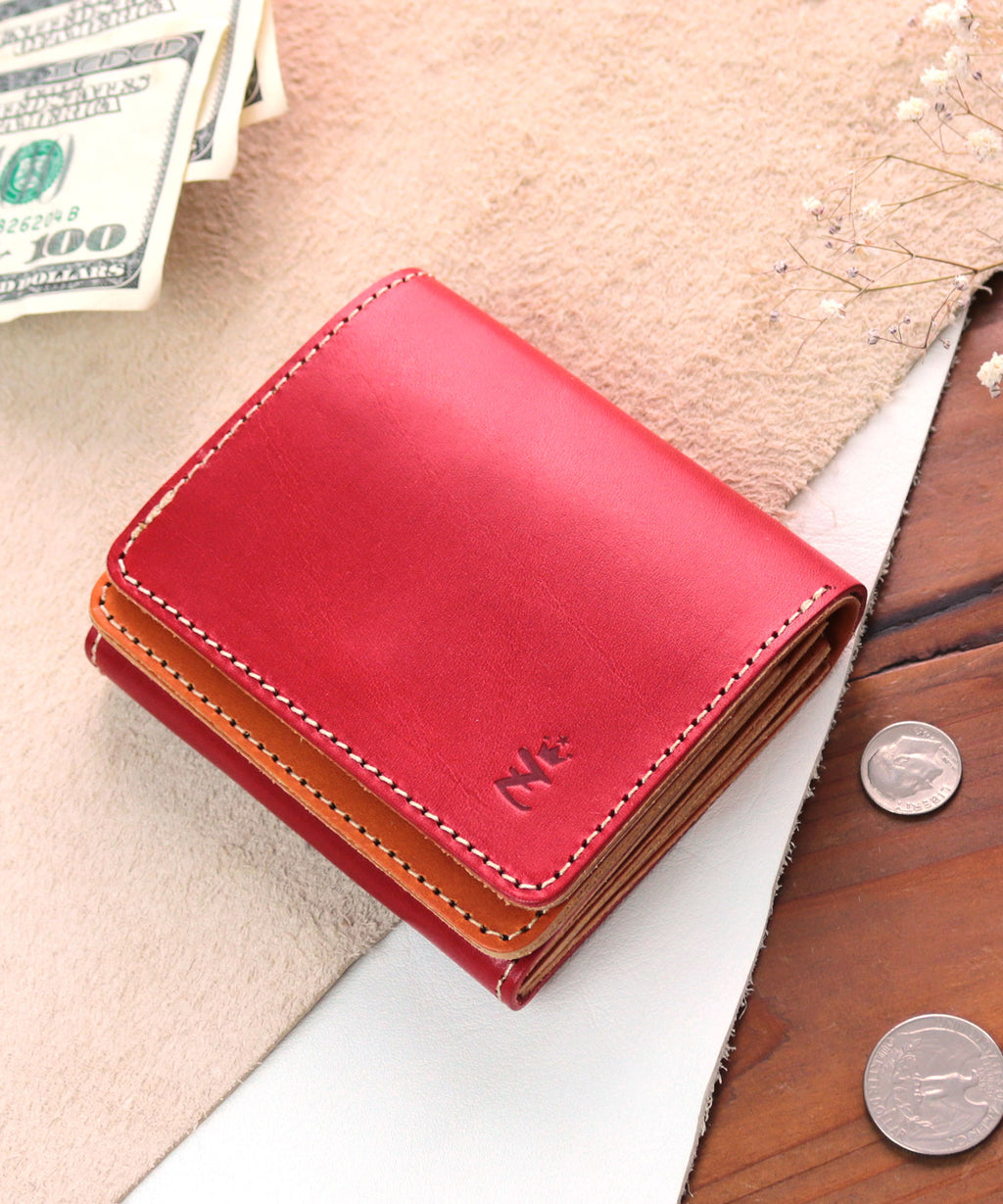 This is a new type of folding wallet with excellent functionality, featuring a double flap that divides the storage space into two.