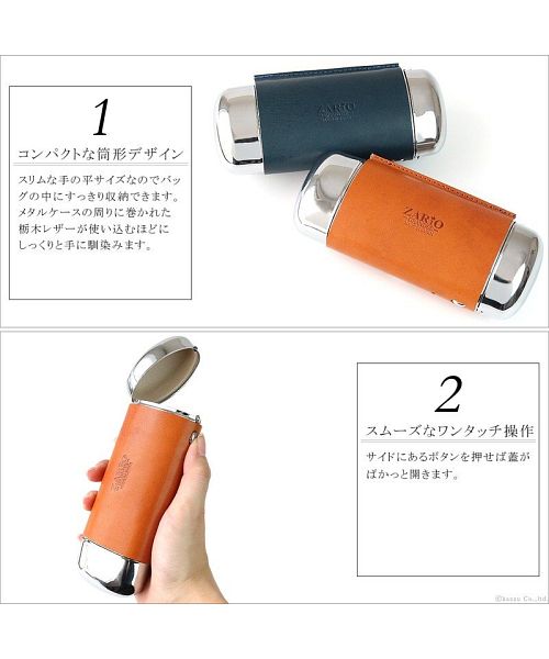 This stylish leather accessory features a combination of glossy metal material and Tochigi leather.