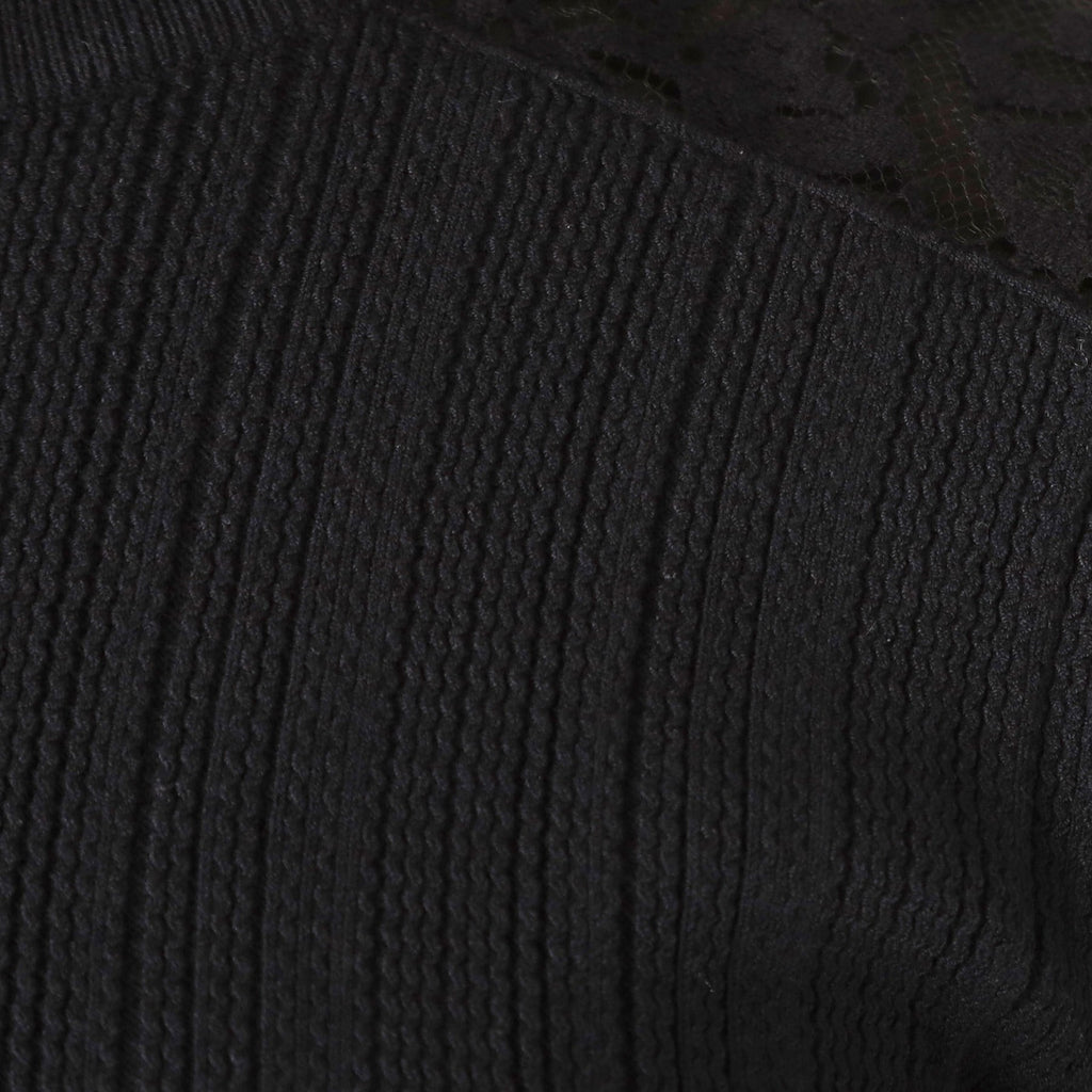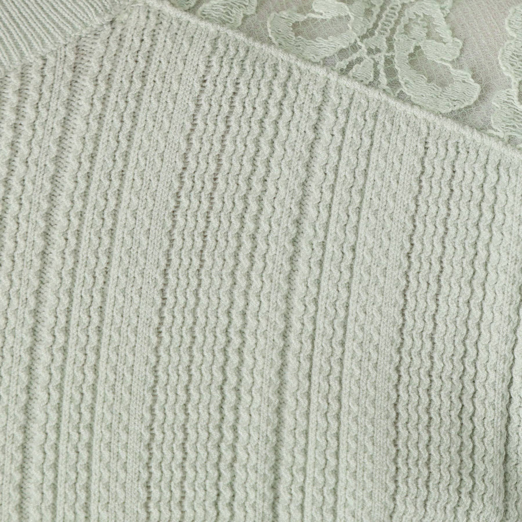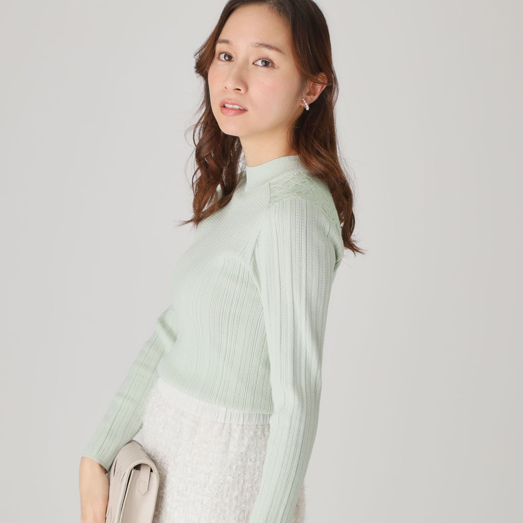 A knit top with delicate lace placed on the shoulders that enhances femininity.