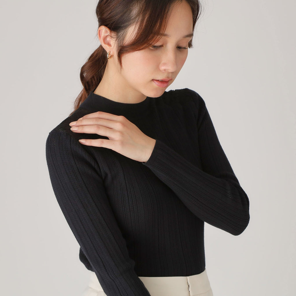 The ribbed texture adds a rich expression, creating a design that is simple yet adds dimension, making it easy to balance with skirts and pants.