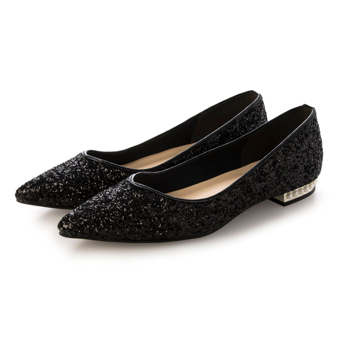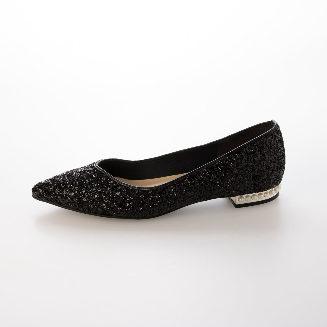 Flat pumps featuring a cute V-cut glitter on the upper.