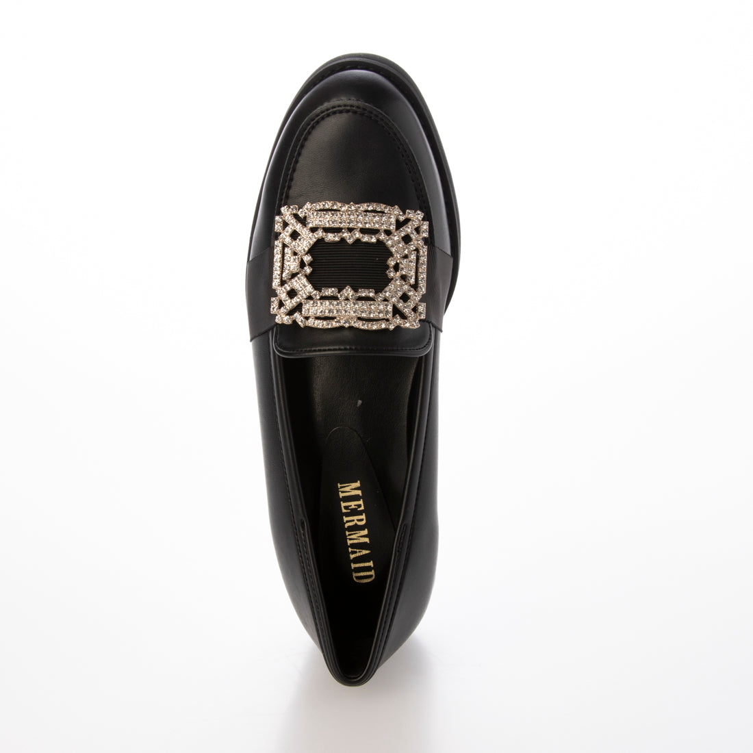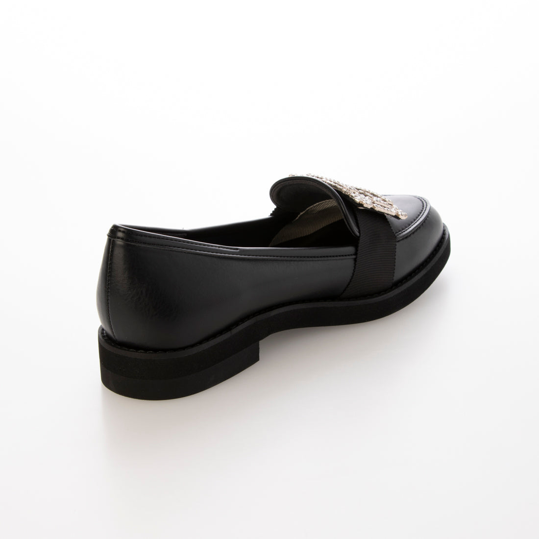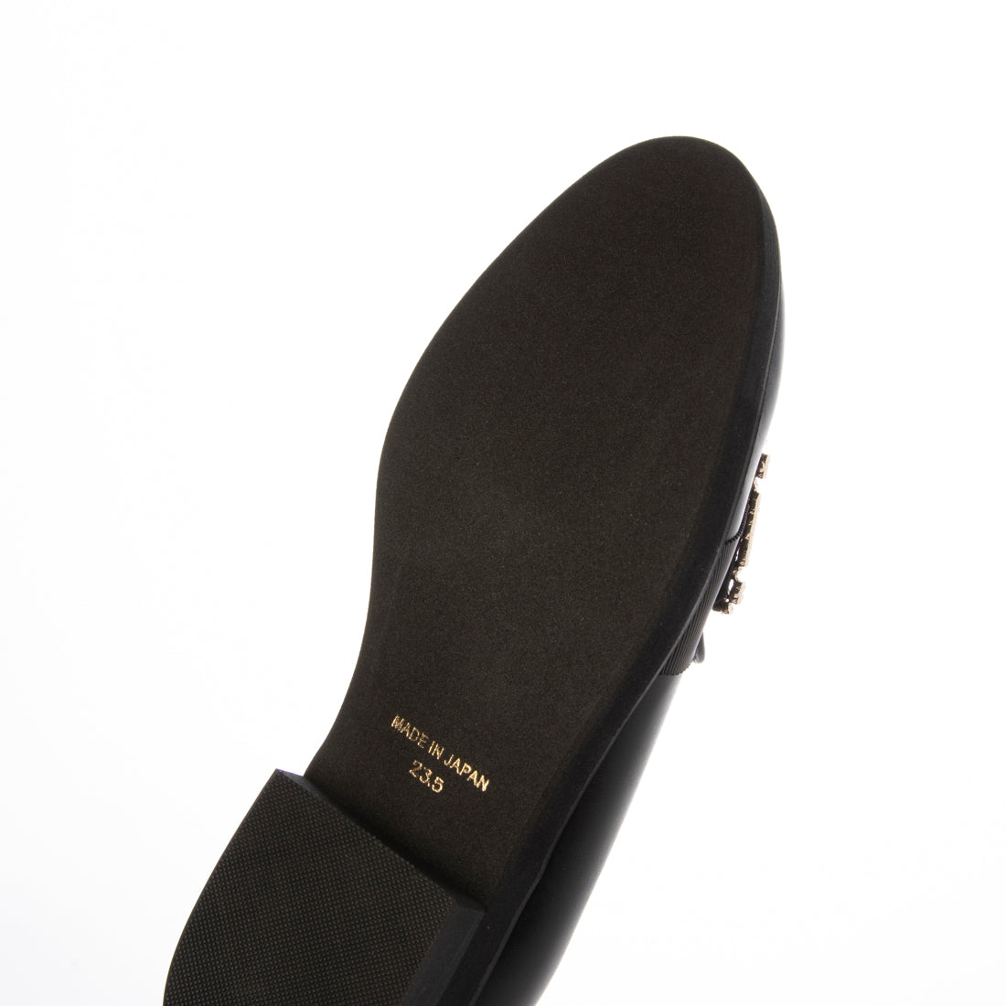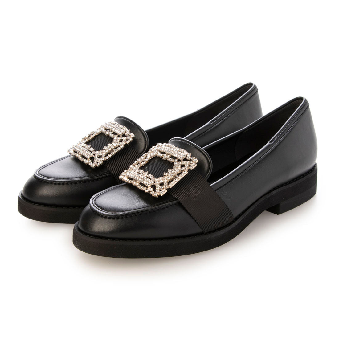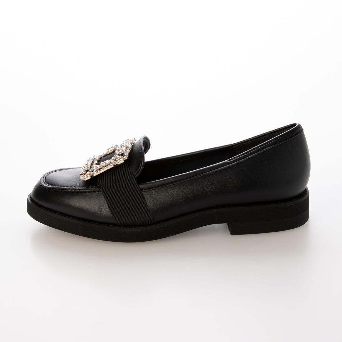 The square bejeweled loafers have a classical impression and a cute design that lifts your spirits, making them an accent in your coordination just by incorporating them.