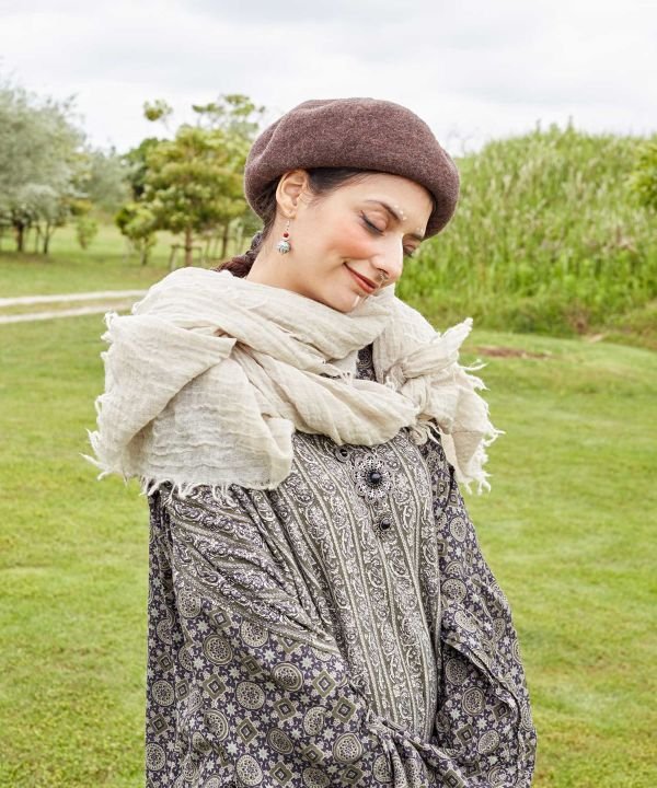 A stole made from high-quality Merino sheep wool (Merino wool) that has a smooth texture and does not itch. It is stretchy and has a large size, which is a nice feature. Available in colors that are easy to coordinate.