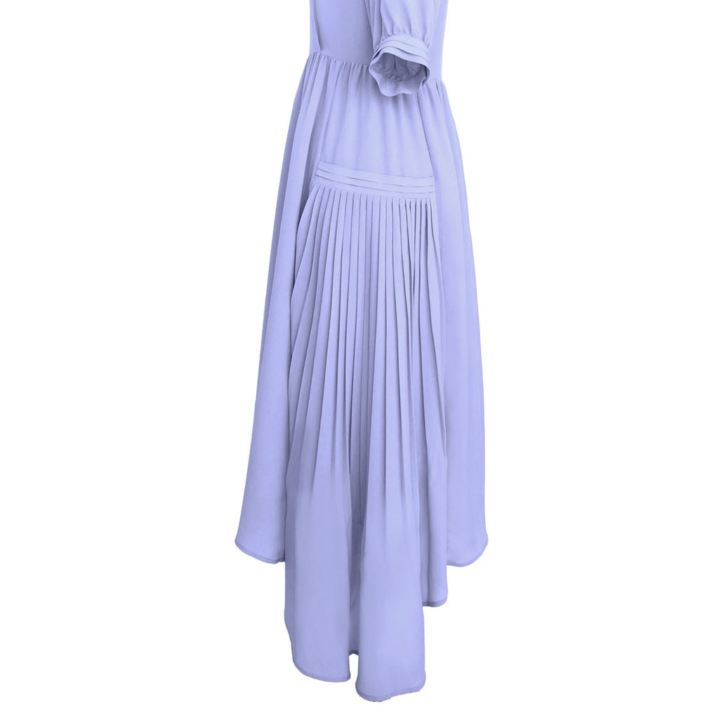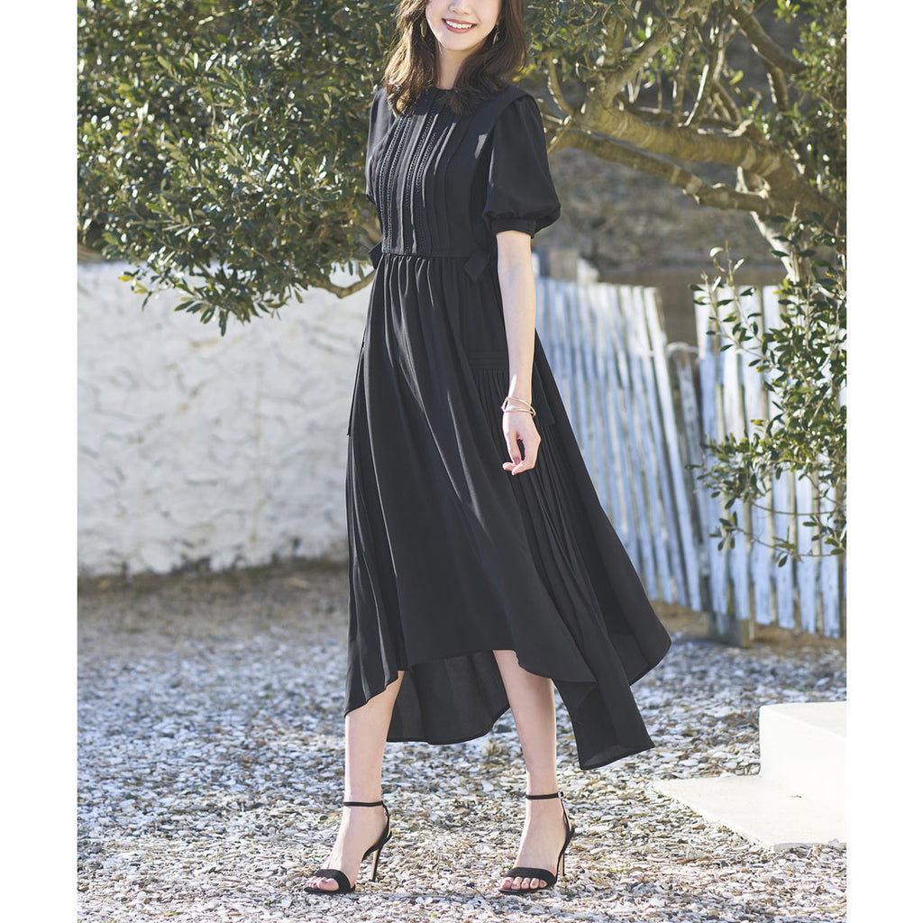 Featuring side tucks and pleats with a hemline that makes a statement, this dress looks great even on its own.