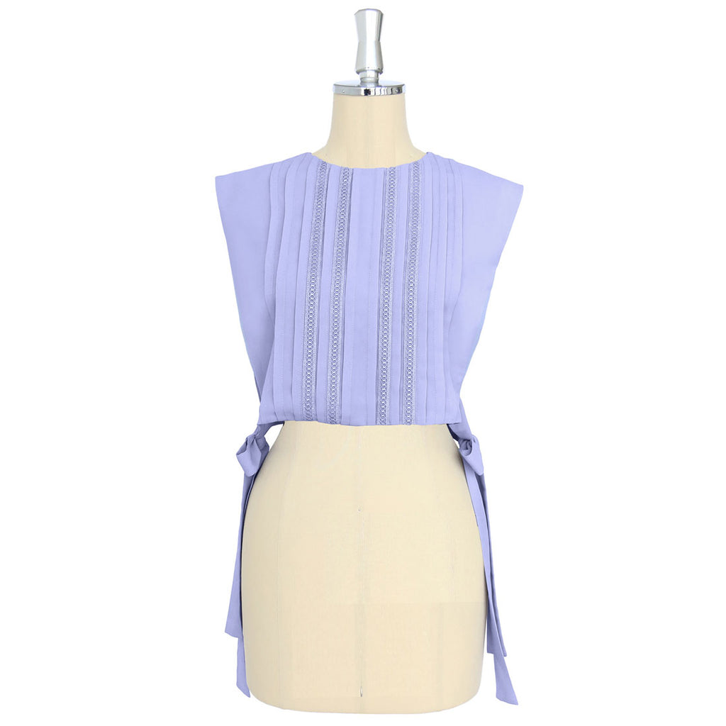Crafted from a soft material with tucks and delicate embroidered lace.