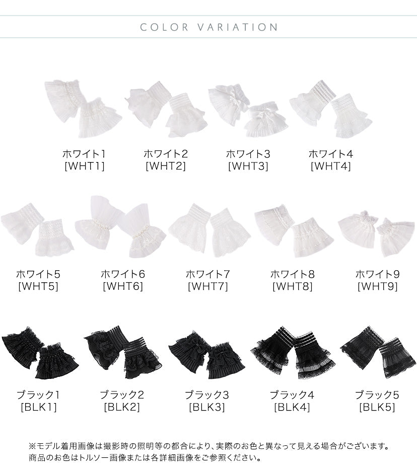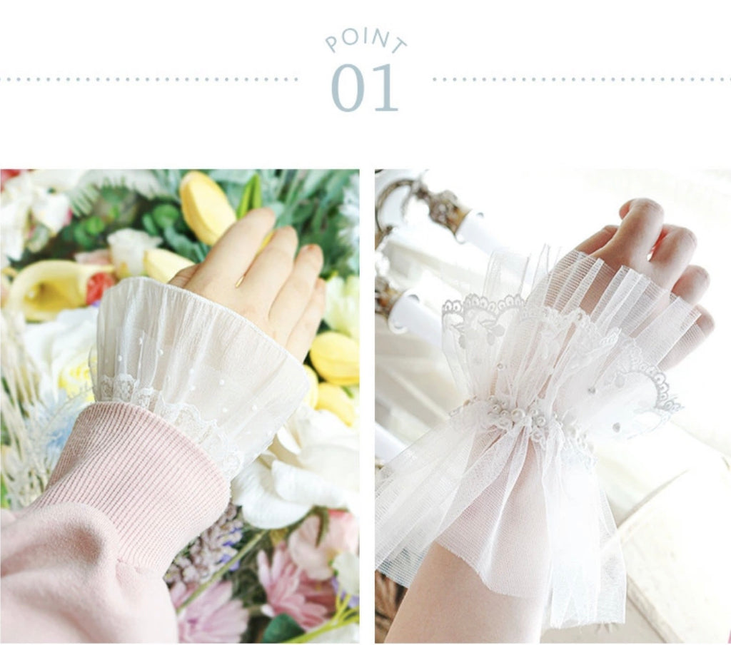 02: The cuffs are all made of elastic, making it easy to put on and take off just by slipping them over the wrists.