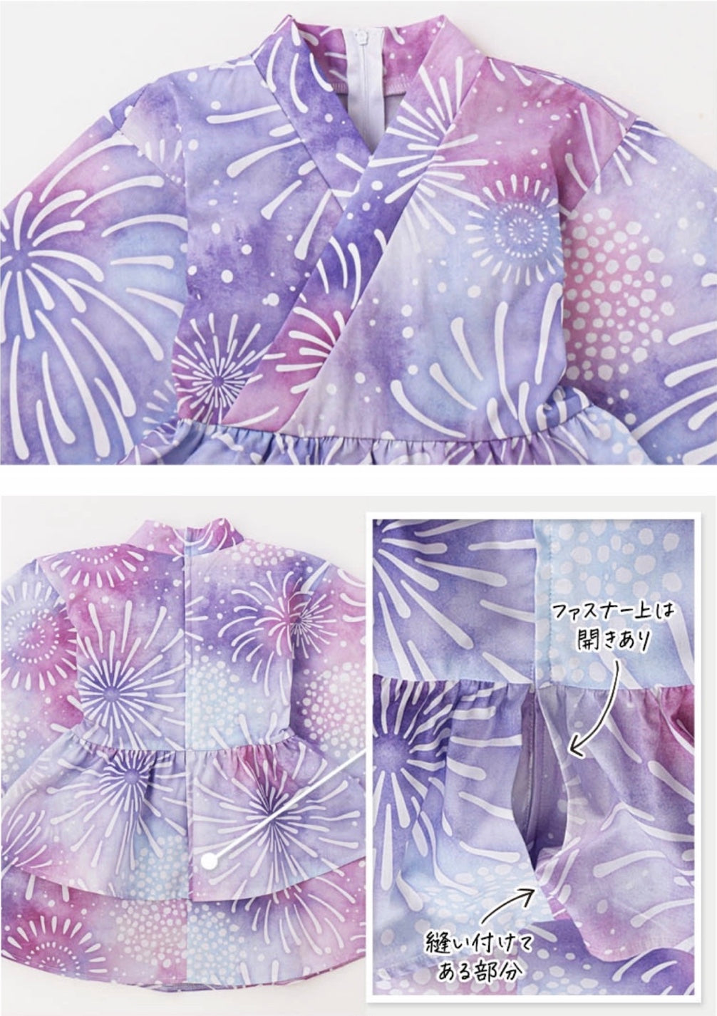 - The back zipper makes changing easy. Instantly, a cute yukata style is complete!