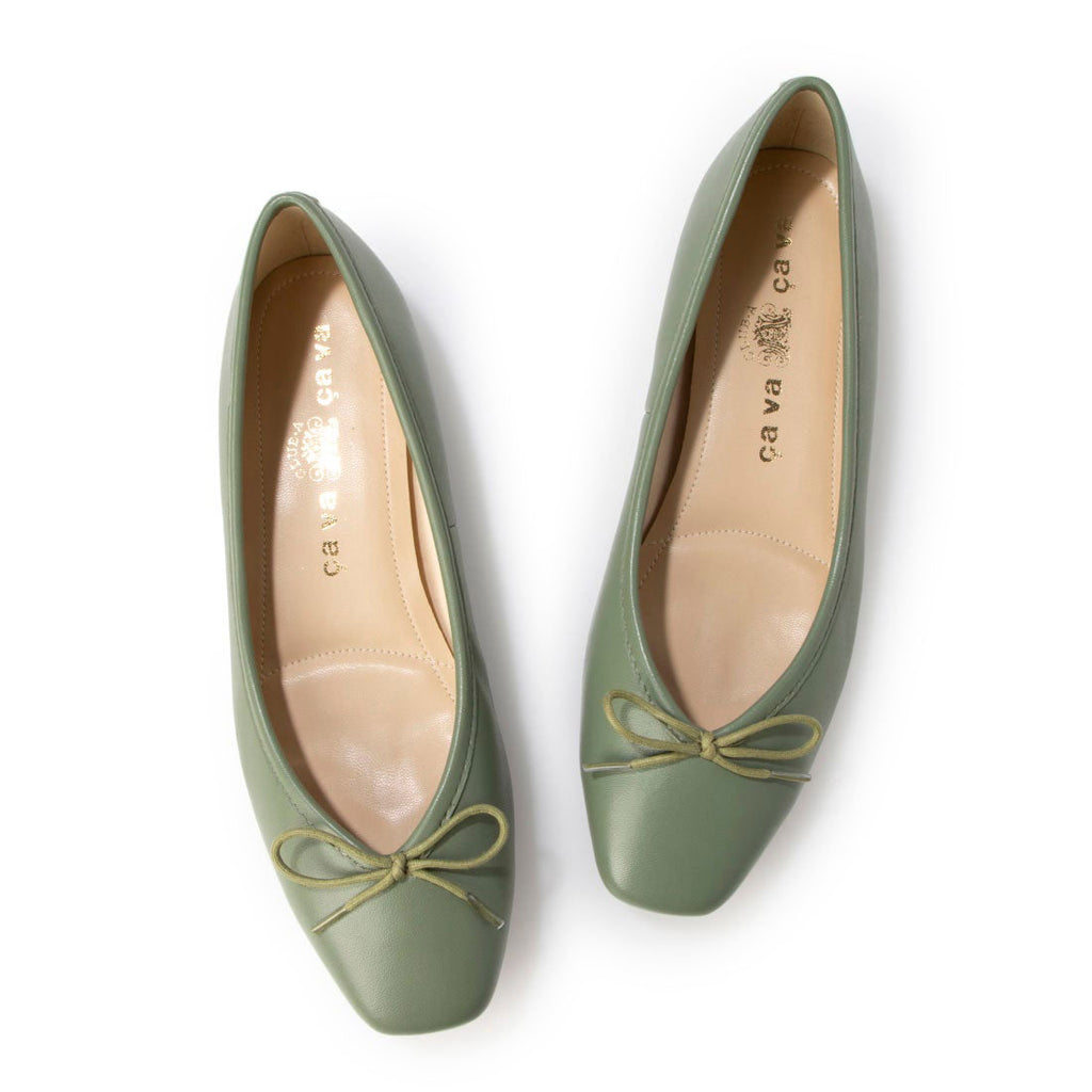 Designed ballet shoes with a girly impression in a square toe line to make them more adult-like, suitable for formal occasions and business scenes.