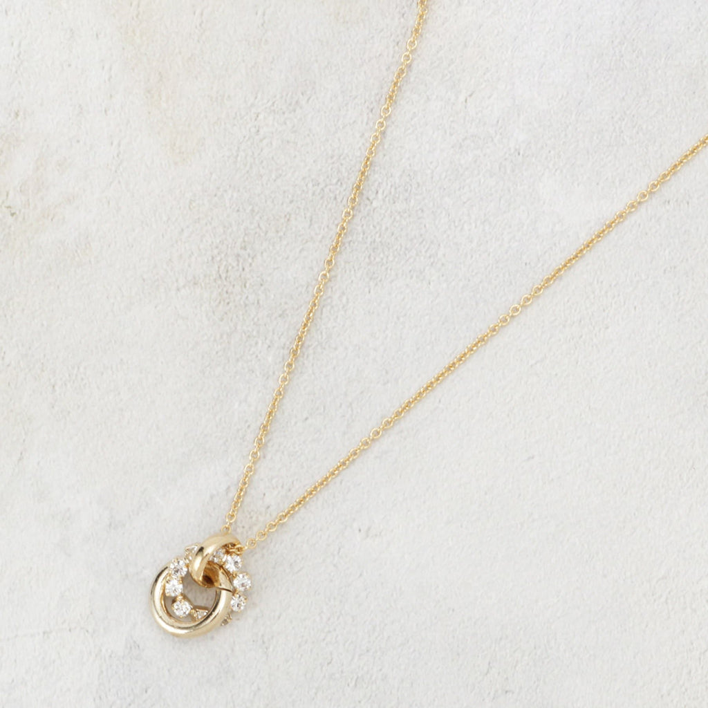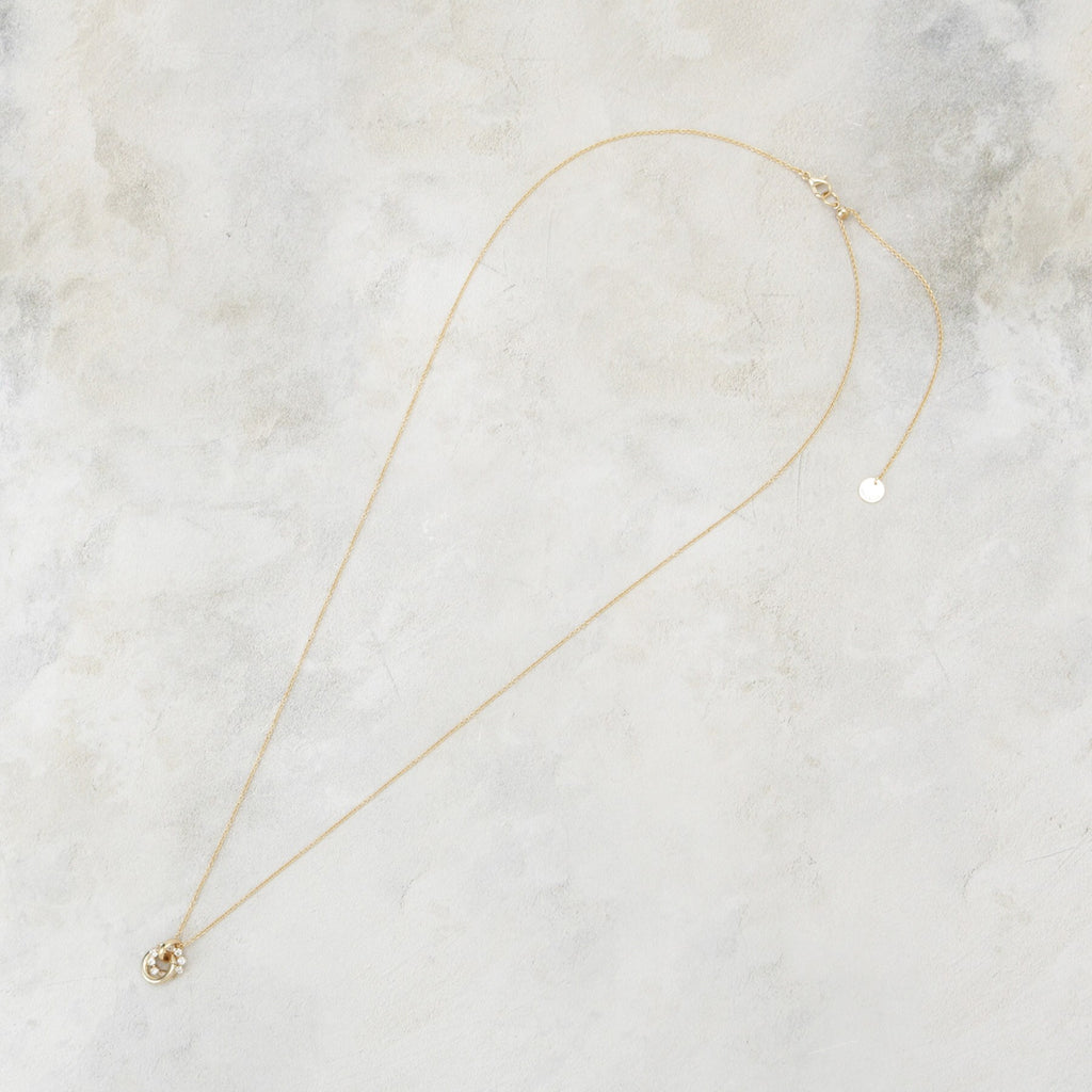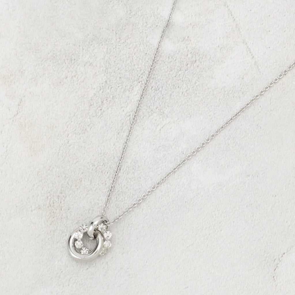 A slide necklace with beautiful bijoux and refined metalwork, perfectly combined.