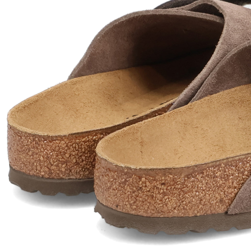 The model "KYOTO," which wraps around the foot like a kimono, has arrived from BIRKENSTOCK. Named after the ancient Japanese capital Kyoto, this model features a belt that securely holds the foot like a kimono obi. The upper is made of soft velour leather and high-quality nubuck leather, giving it an elegant appearance. It is a sandal that can be loved all year round by pairing with thick socks or tights. There is approximately a 5mm difference in maximum width between standard and narrow widths.