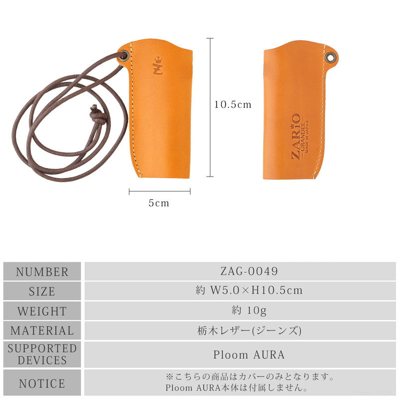 Zario Grande ZARIO-GRANDEE- Ploom Aura Case Ploom Aura Cover Compatible with Ploom AURA Dedicated Electronic Cigarette Strap Genuine Leather Tochigi Leather Jeans Made in Japan ZAG-0049
