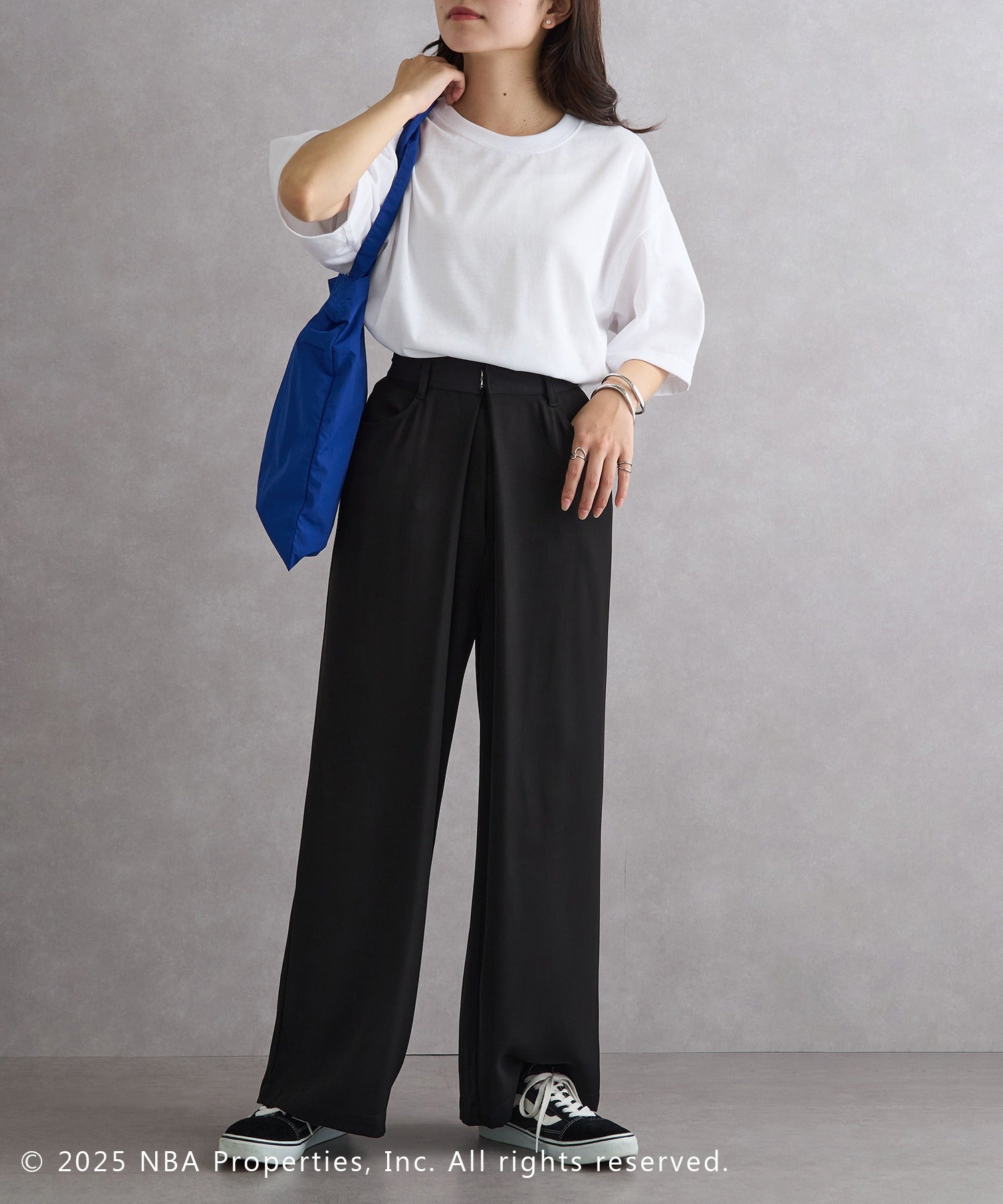 Street-like style with wide denim and sneakers