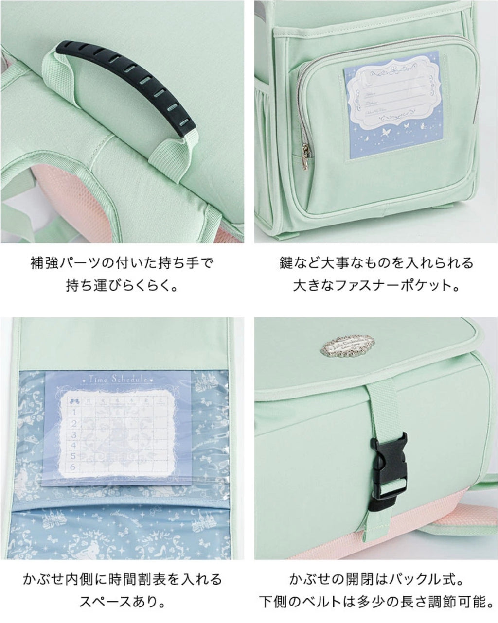 The synonymous "Little Cinderella Randoseru" of Catherine Cottage Randoseru series uses carefully selected original parts