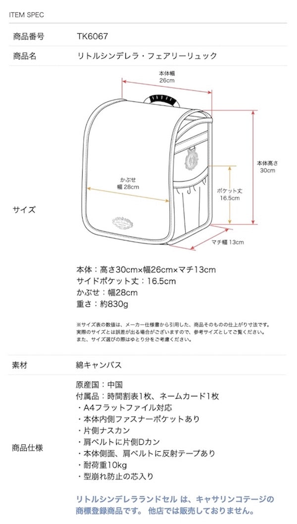 Little Cinderella Randoseru is a registered trademark of Catherine Cottage.