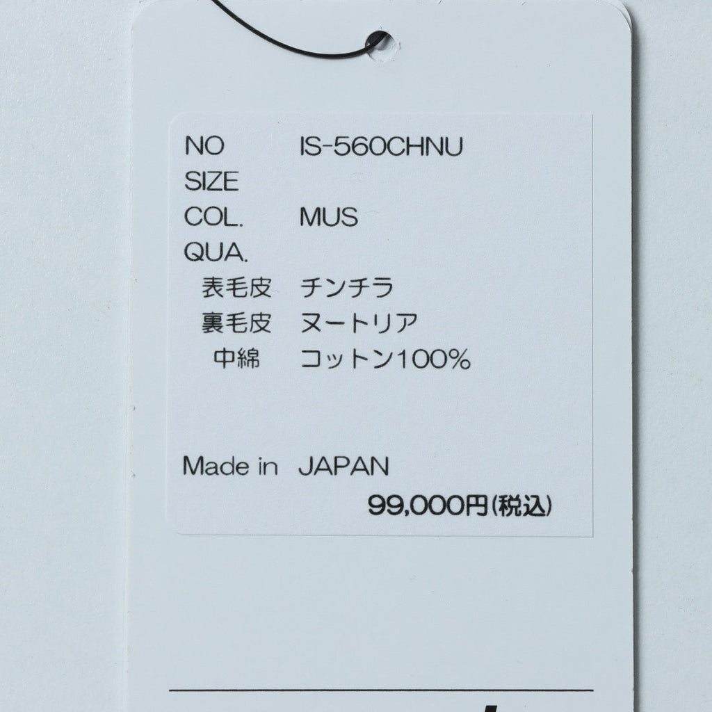 | Material | 素材:表毛皮:チンチラ 裏毛皮:ヌートリア 中綿:コットン100% |