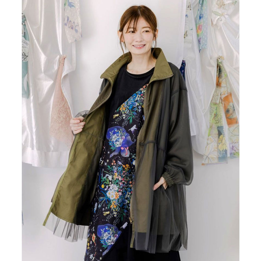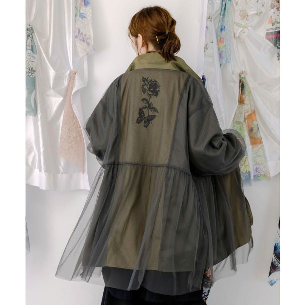 ScoLar floral butterfly embroidery tulle layered long blouson