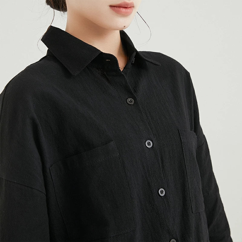 The drop shoulder naturally drops the shoulder line, creating a moderate relaxed feeling.