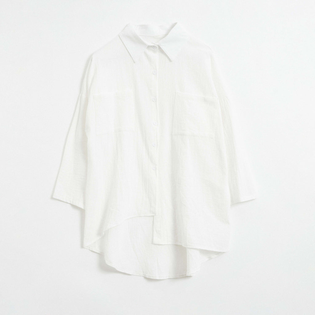 The asymmetrical hem adds an accent and expresses a silhouette with movement.