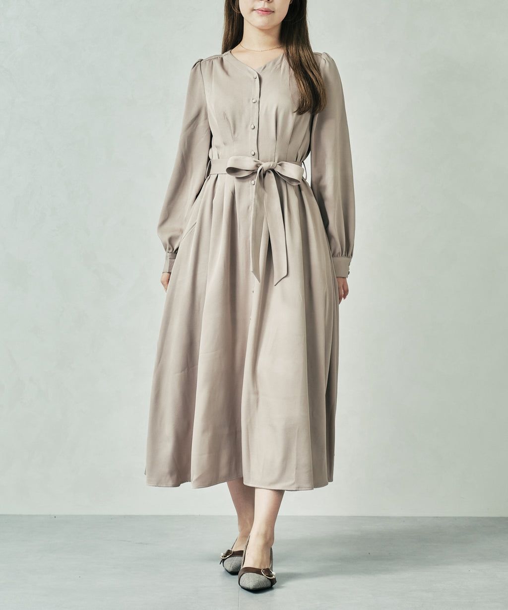 【WEB限定アイテム】The tucks at the Waist create a beautiful silhouette, and the Waist ribbon adds an accent.