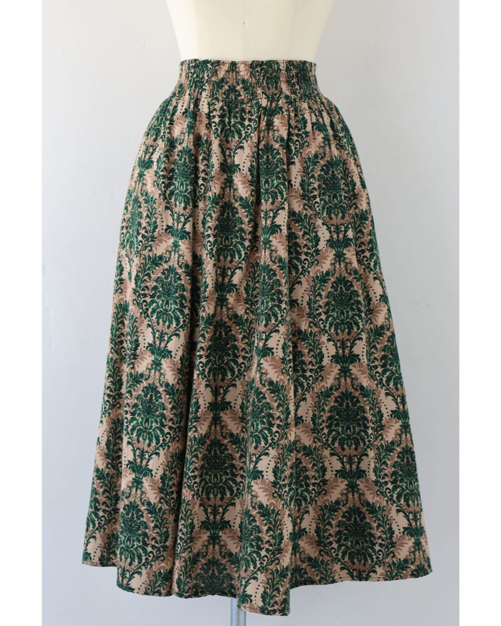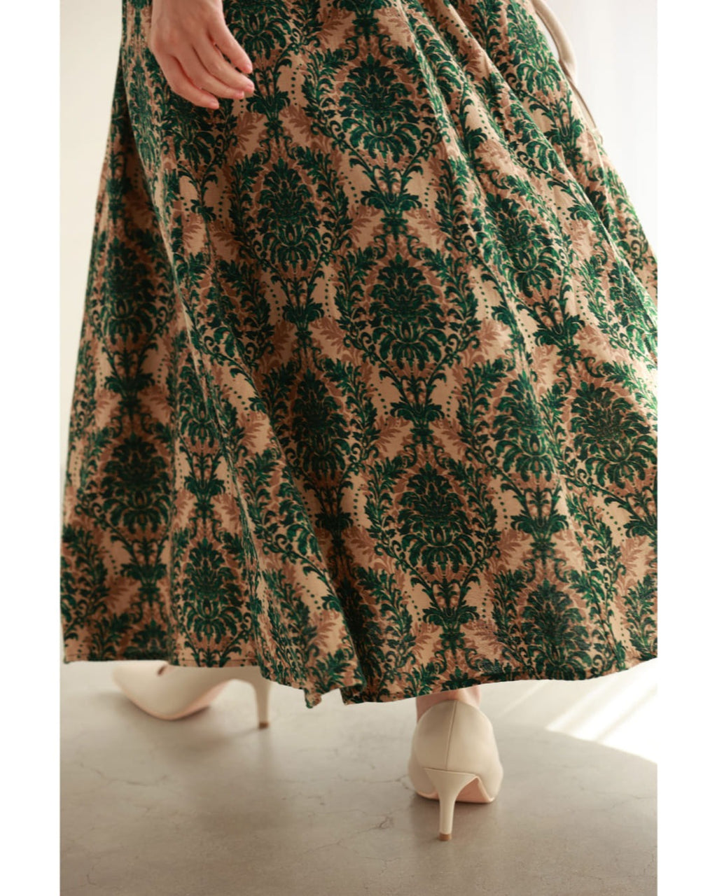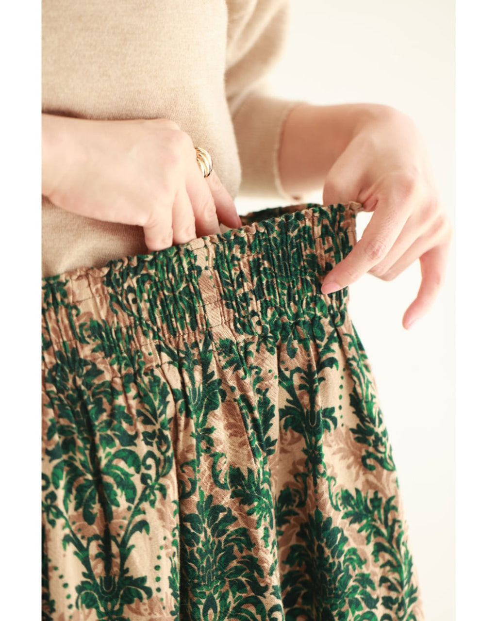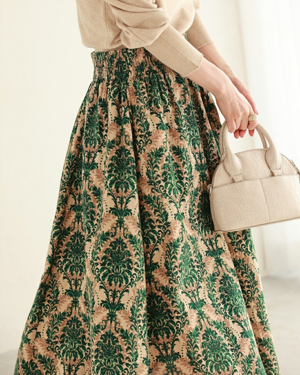 CAWAII Glamorous green Damask Pattern Long Skirt
