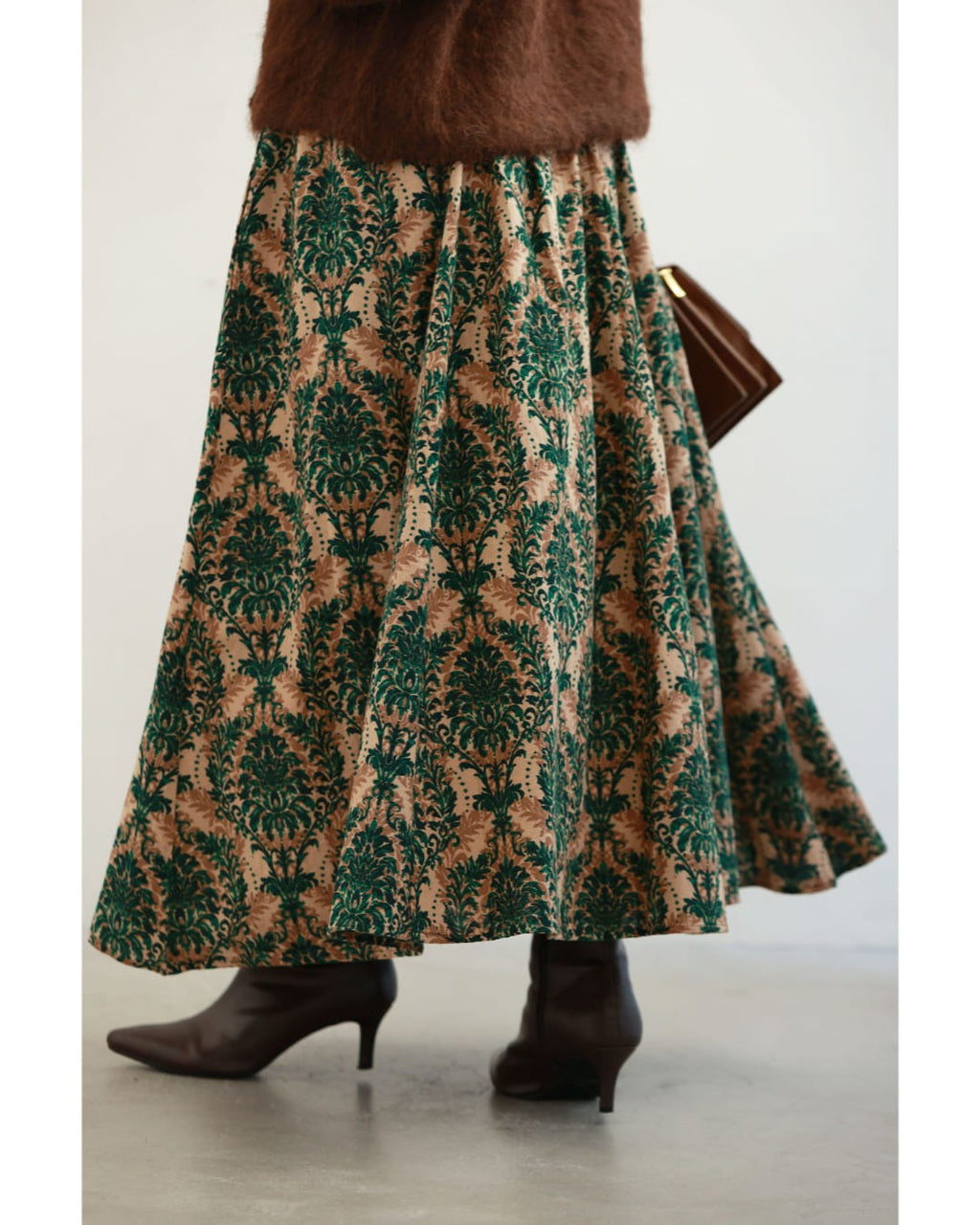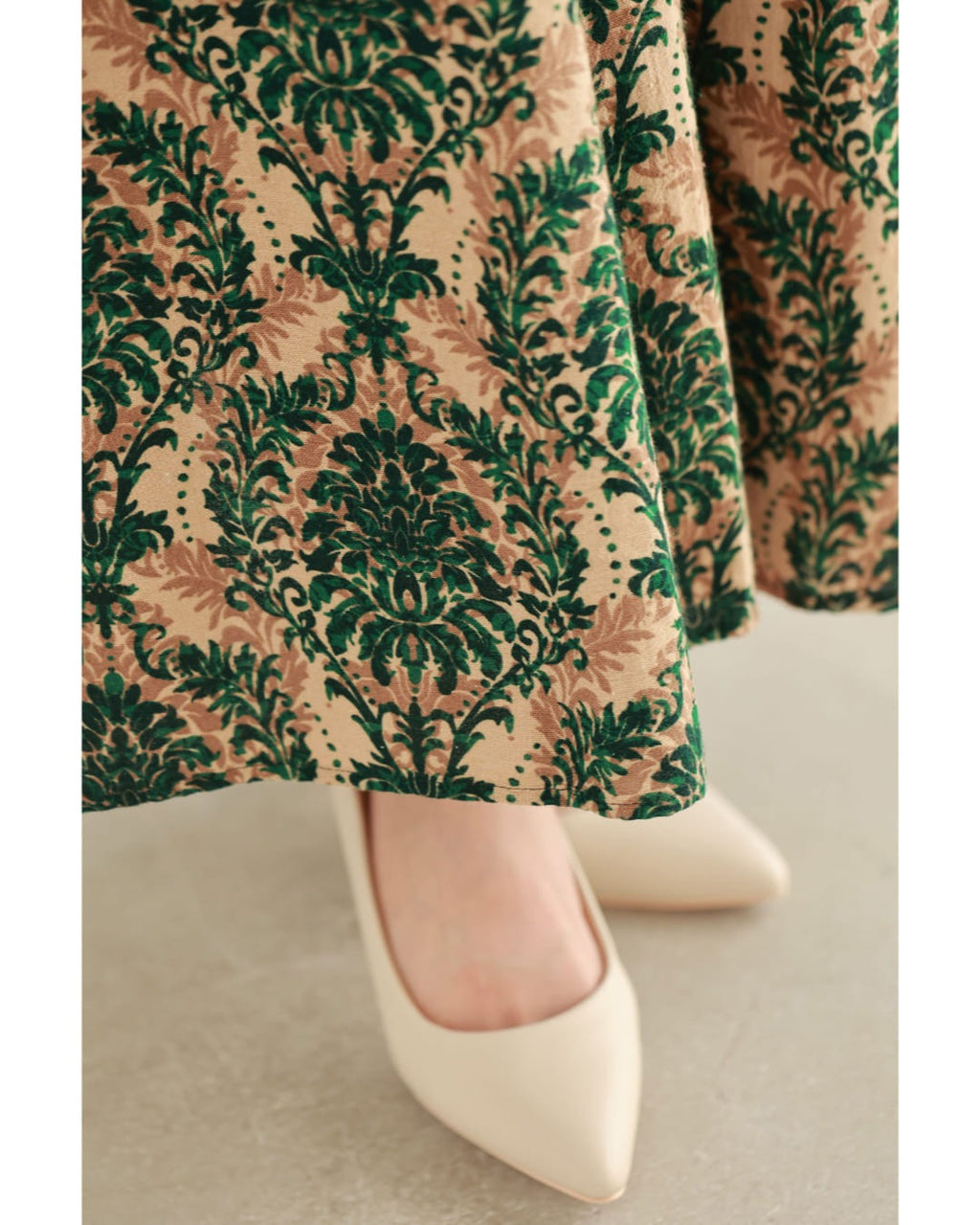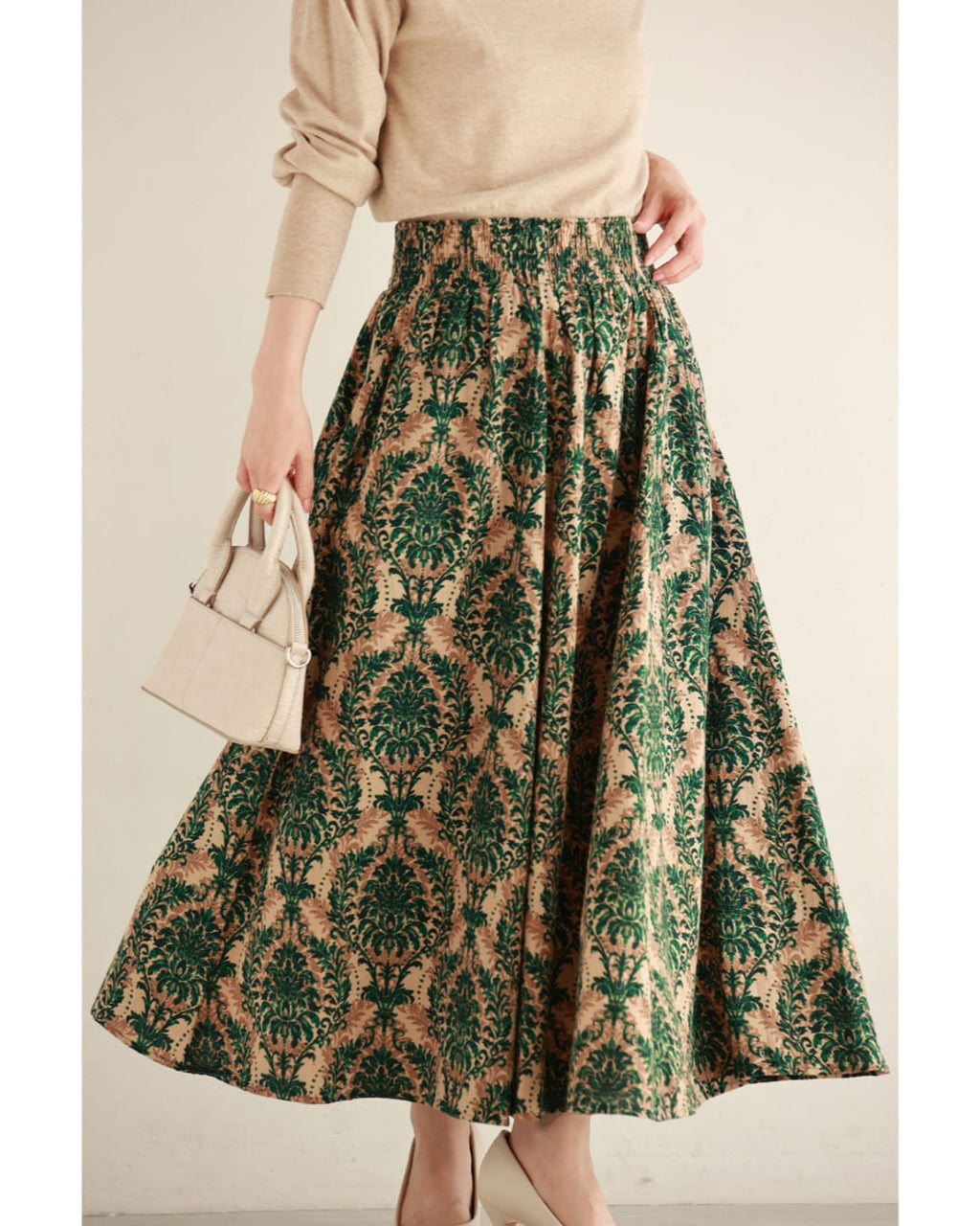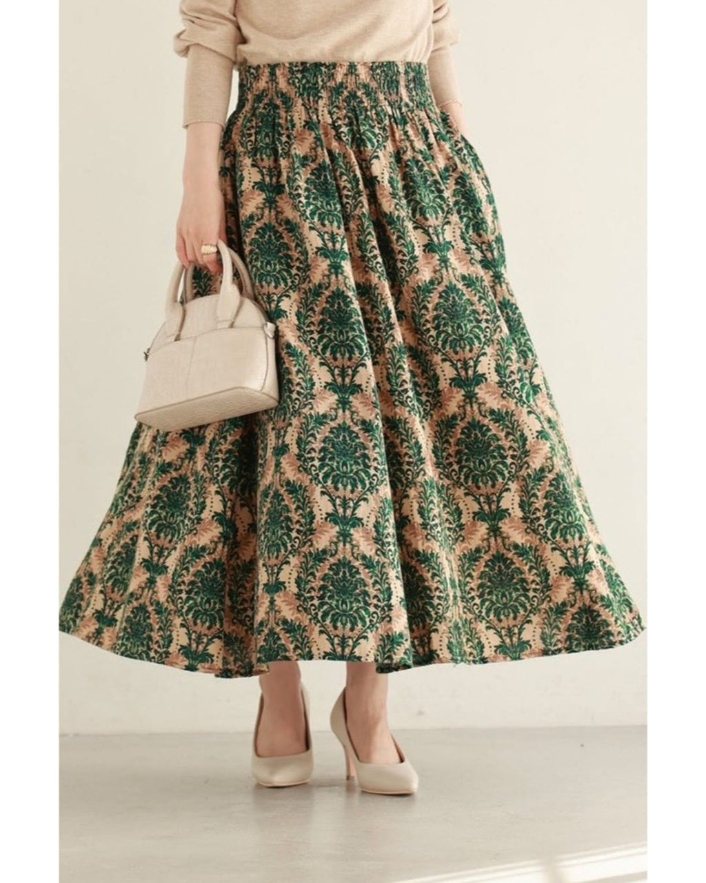 CAWAII Glamorous green Damask Pattern Long Skirt