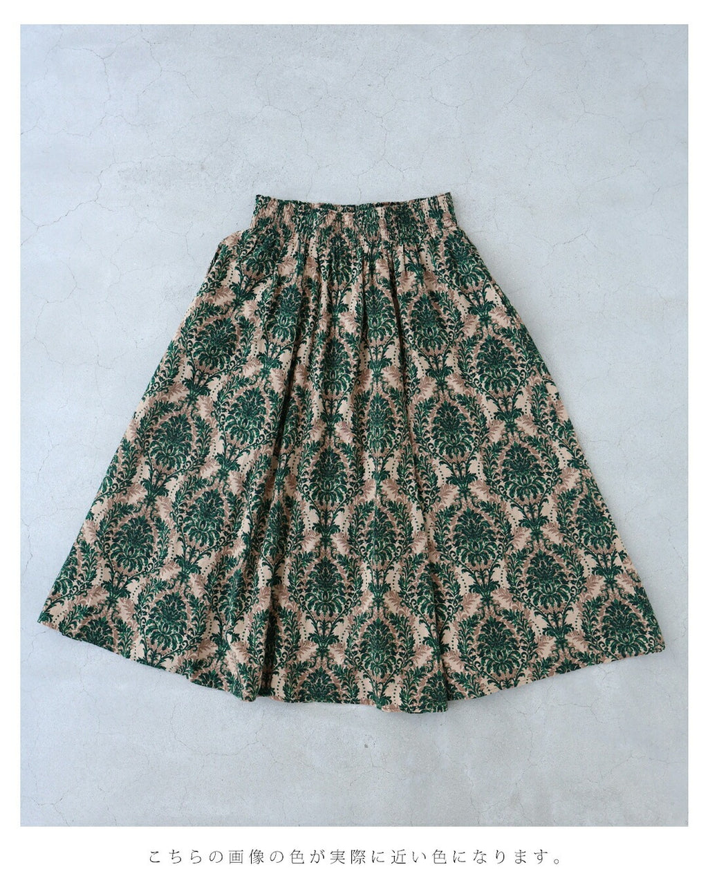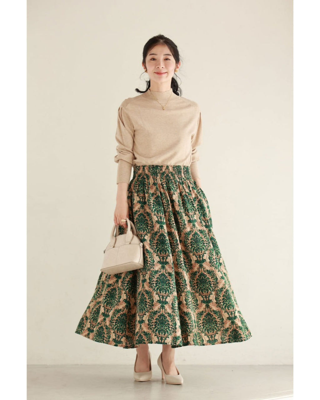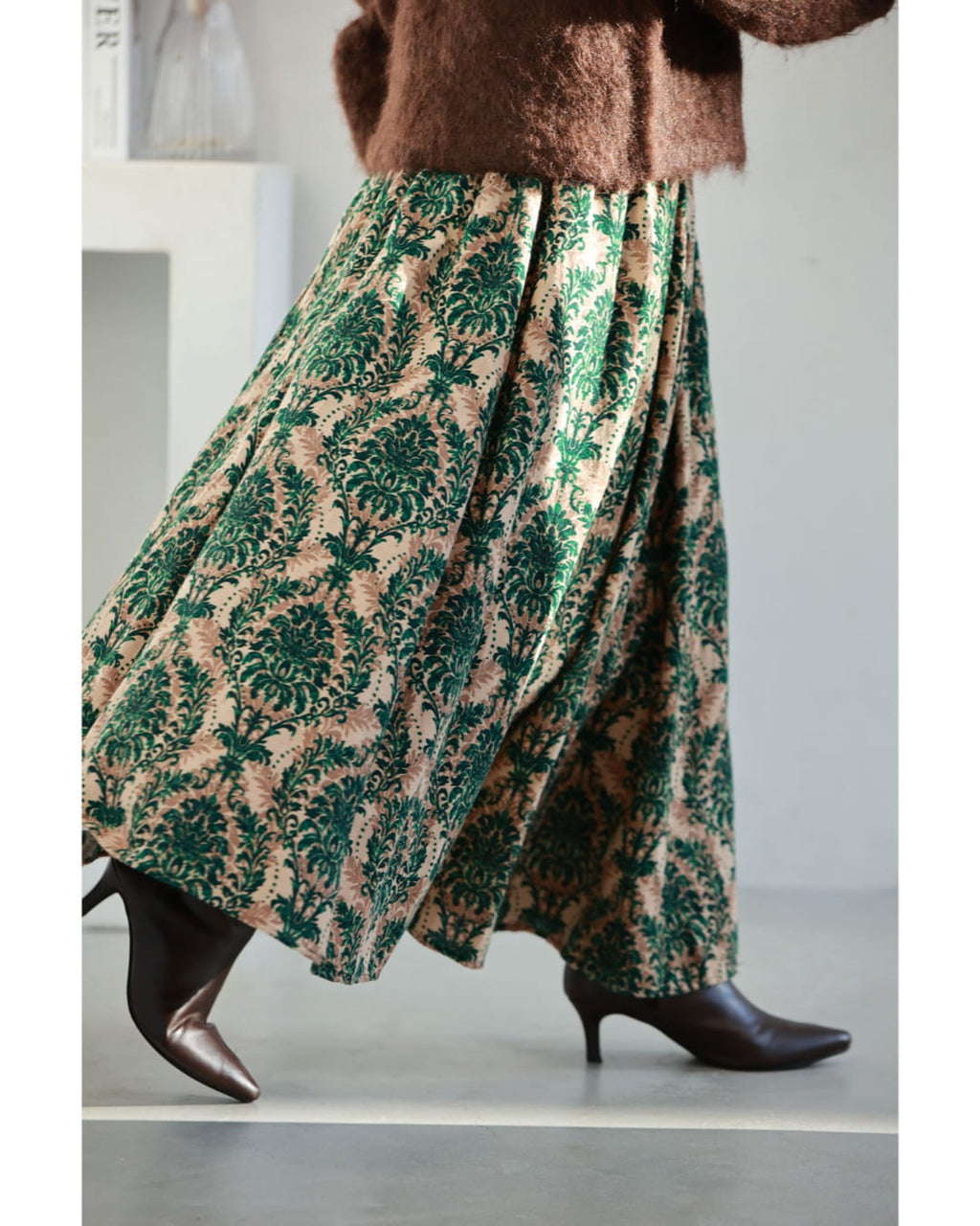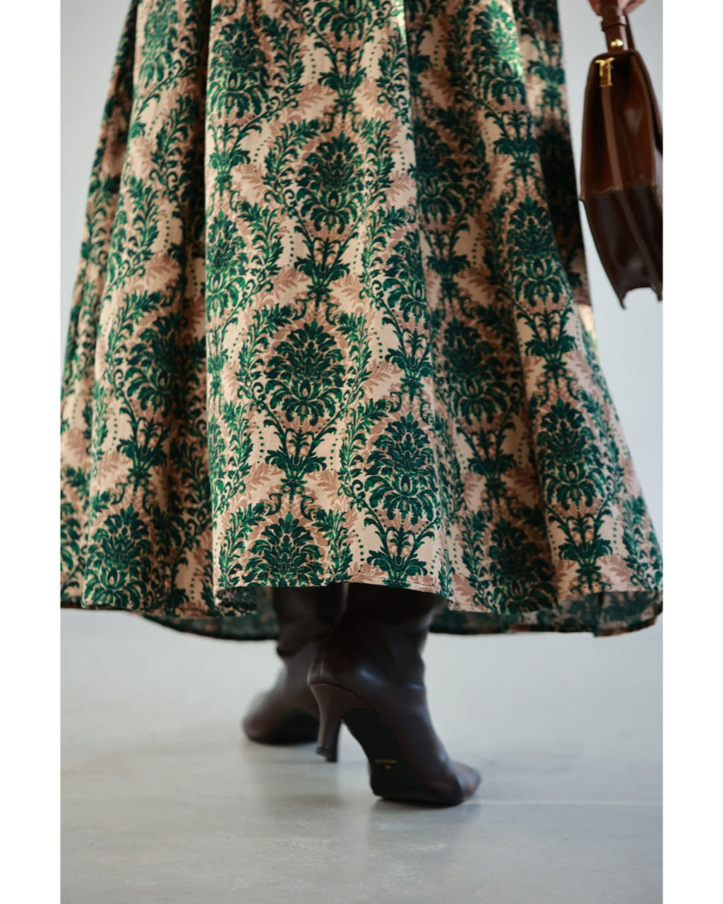 CAWAII Glamorous green Damask Pattern Long Skirt