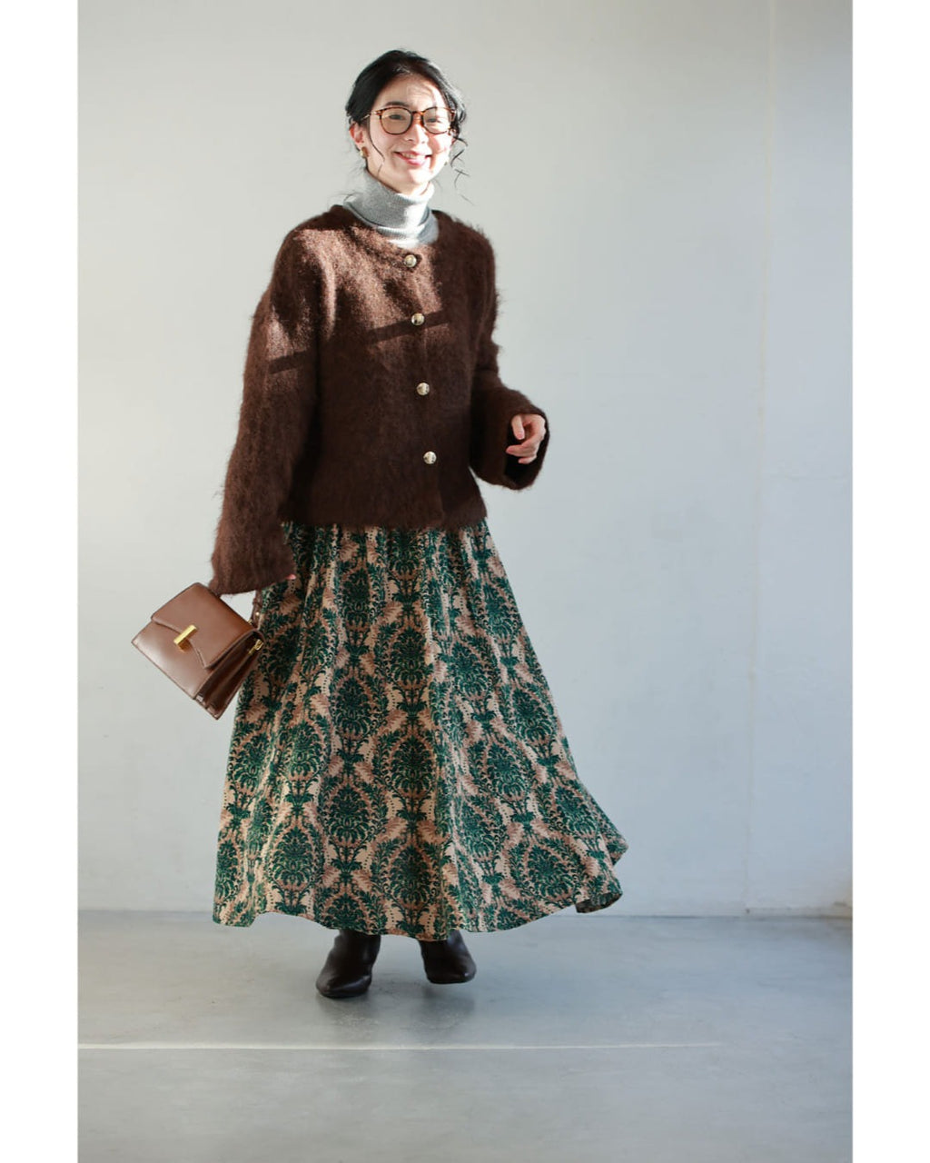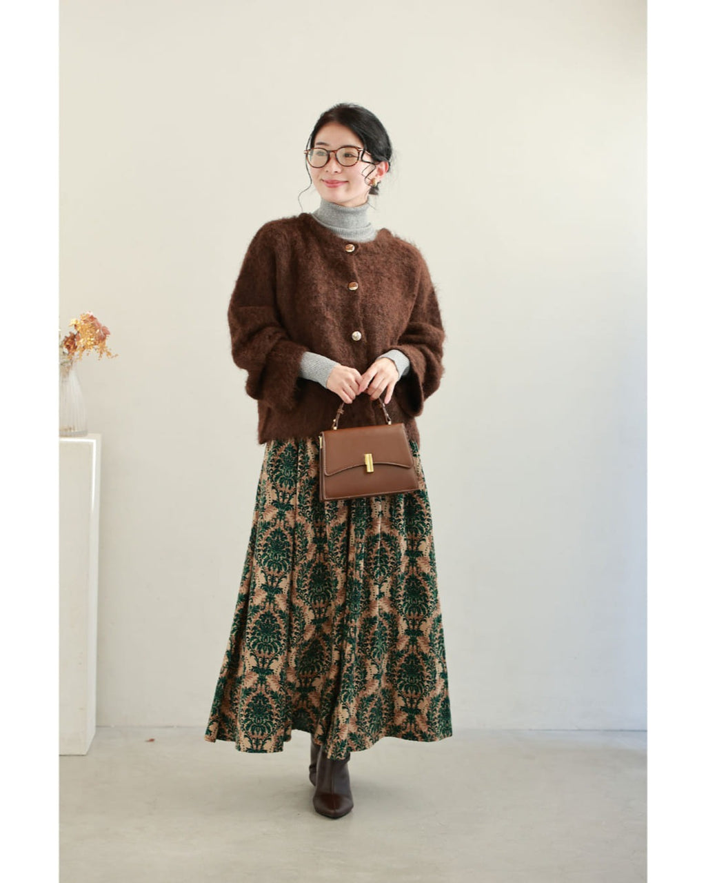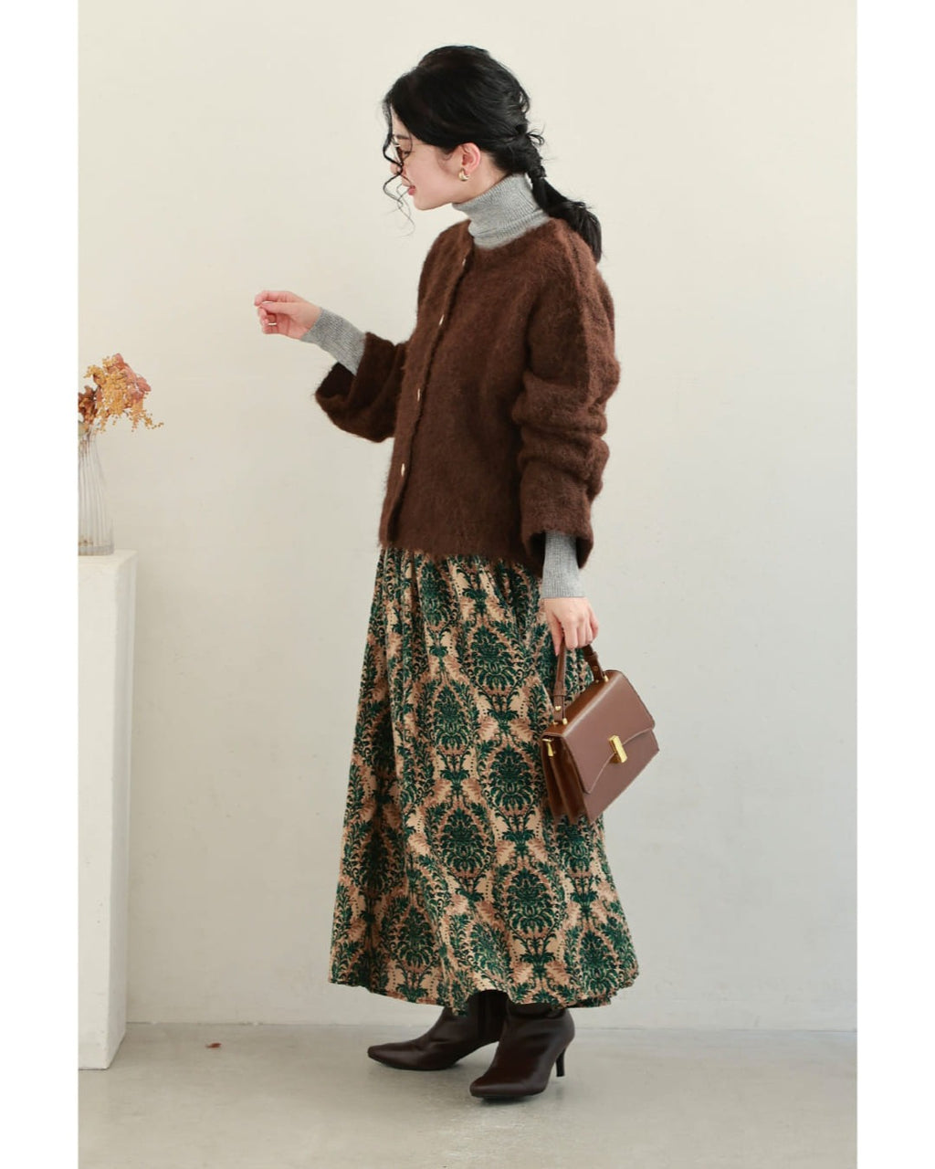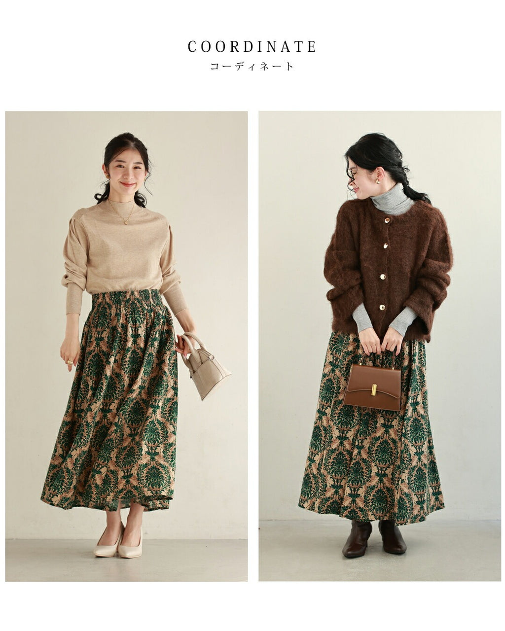 CAWAII Glamorous green Damask Pattern Long Skirt