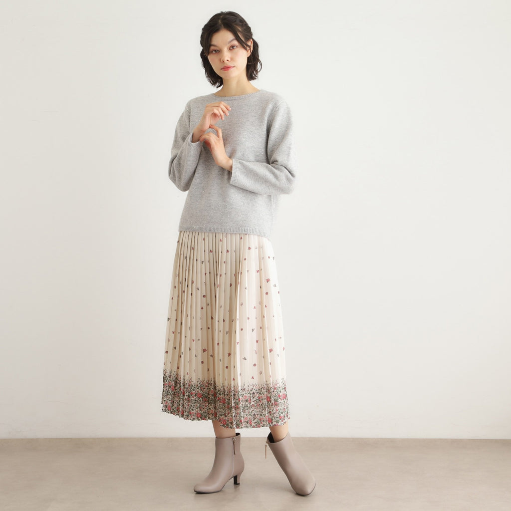 This mid-pitch pleated skirt, which utilizes the dot-like pattern's atmosphere, has a Length that pairs well with boots.