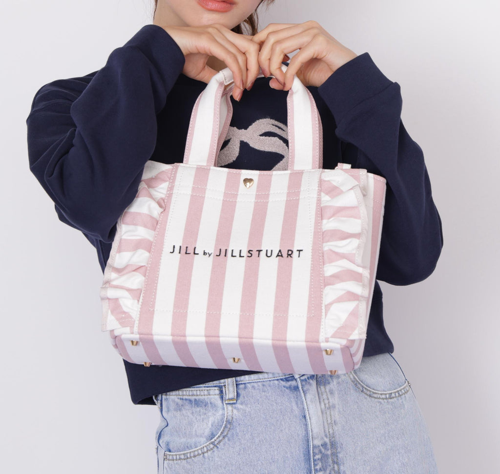 JILL by JILL STUART's classic favorite "Frill Tote" features a limited edition print for Valentine's Day! The special print inspired by Valentine's Day comes in two color variations: a cute polka dot pattern and a catchy stripe pattern. Just incorporating it into your everyday outfit will significantly elevate your mood with its presence. It comes with a shoulder strap for easy carrying. *Please note that due to lighting conditions during photography, the colors may appear different. Additionally, depending on the environment of your computer or smartphone, there may be slight differences between the product and the image colors. Thank you for your understanding. *For the product's color, please refer to the individual product images. *Please be aware that the product images are samples, and there may be changes in color, size, and other specifications. Thank you for your understanding.