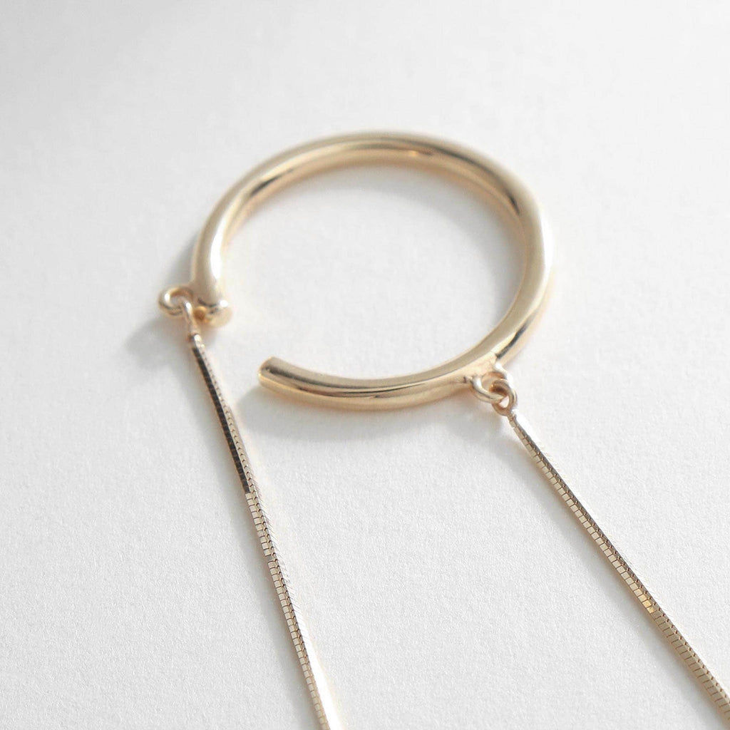 A long vertical design with chains swinging in front and behind the ears, offering a sense of presence while being lightweight and comfortable to wear.