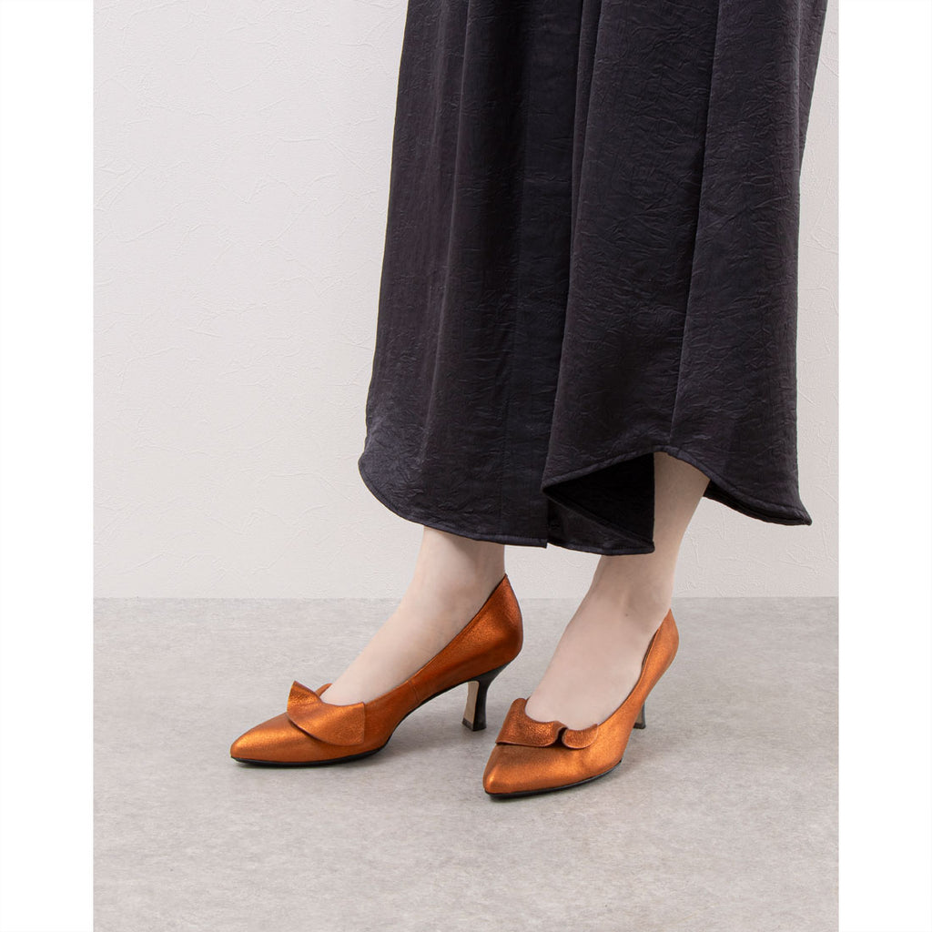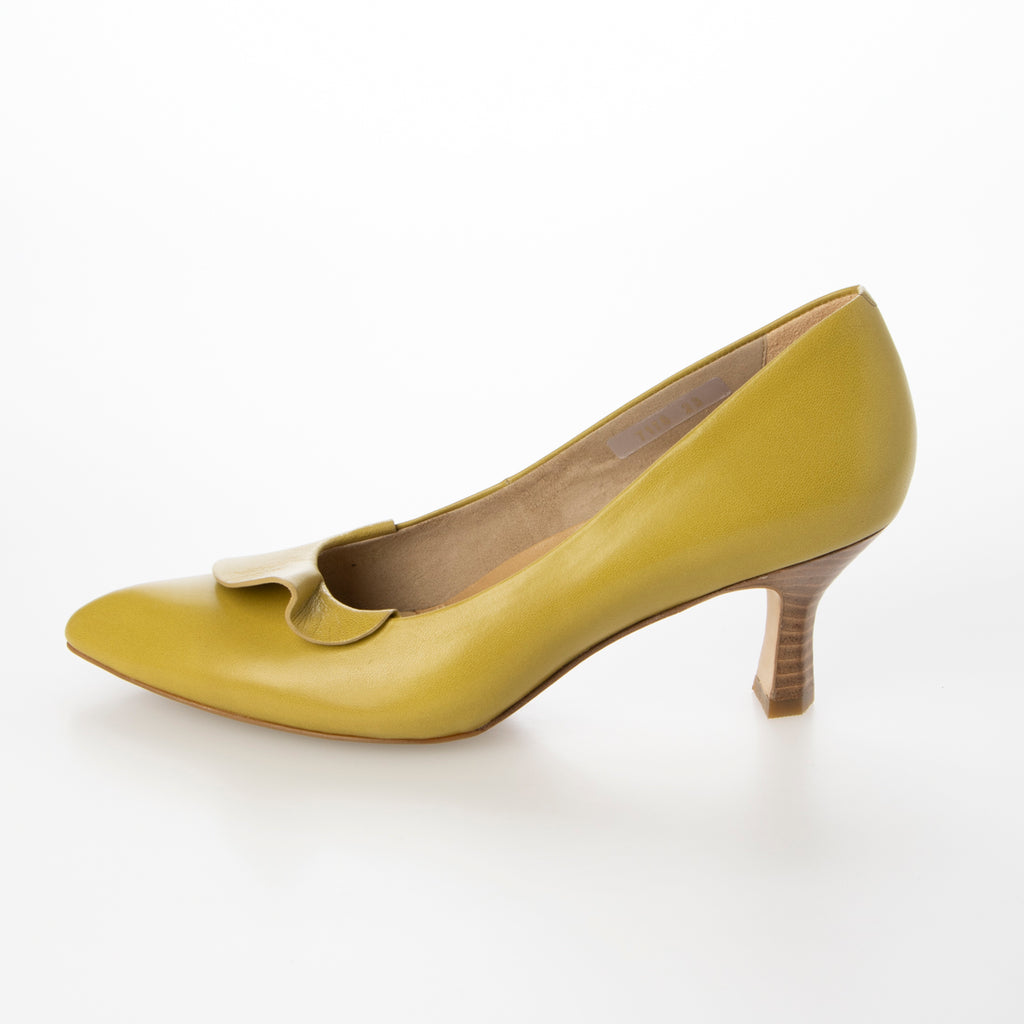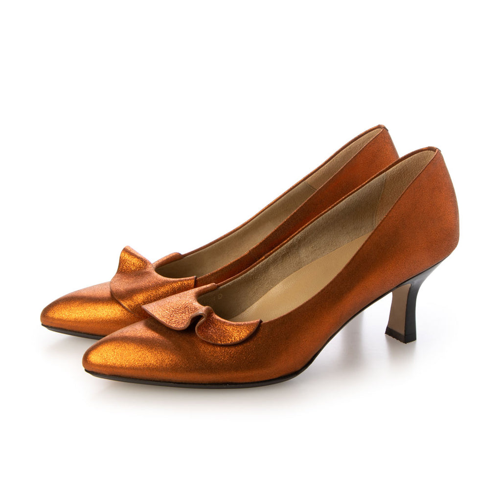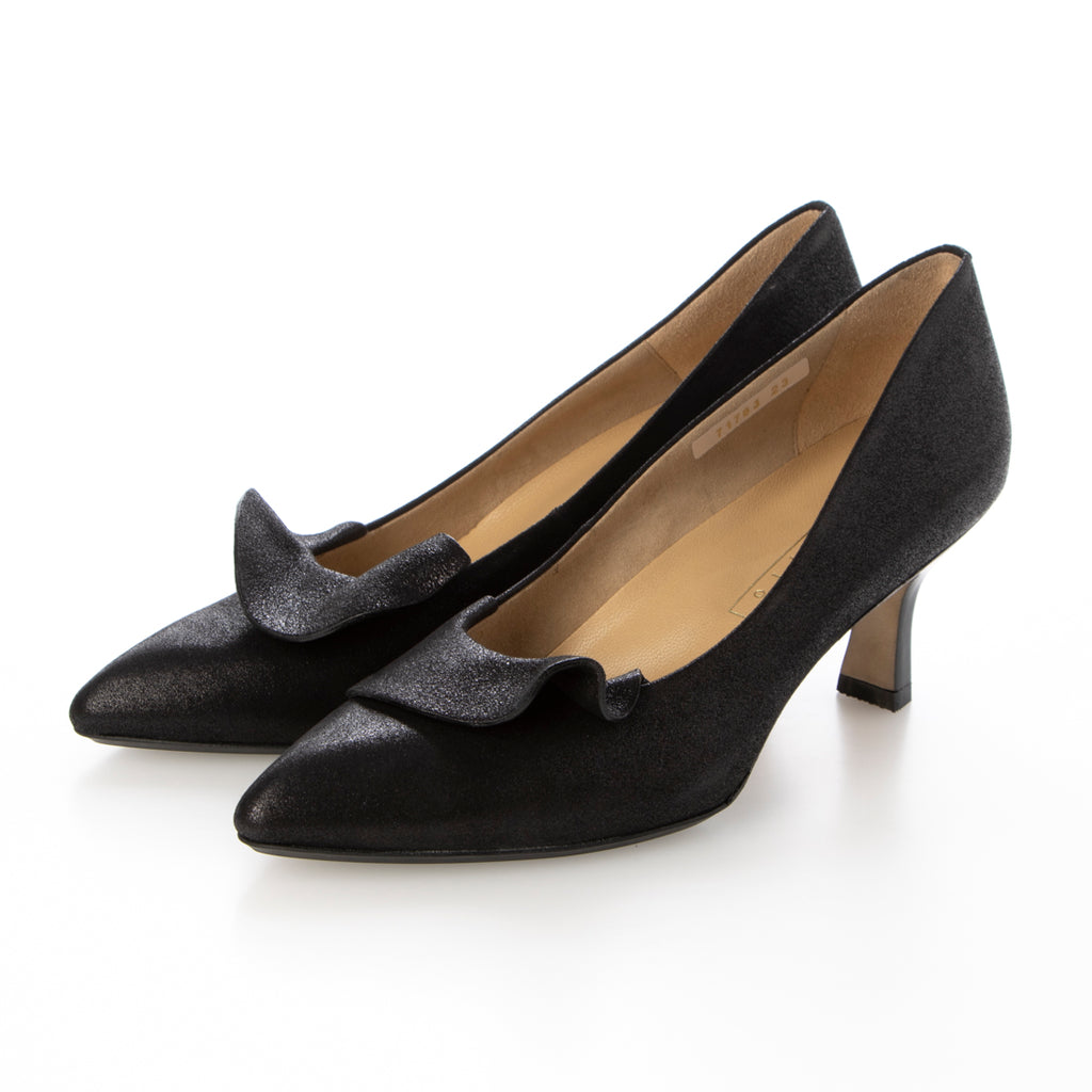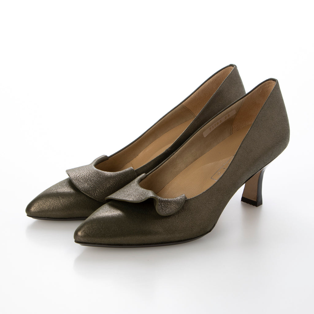 These are feminine design pumps with ruffle detailing applied to the topline.